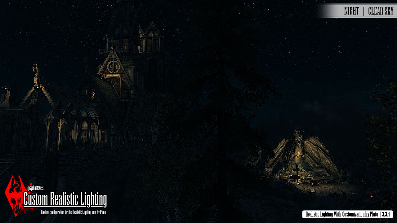 Подмечу, что если у вас современное железо нового поколения и вам не важен fps, то возможно существуют какие нибудь ENB с более красивым (детальным) освещением и такой-же пугающей атмосферой. Конечно же, всё необходимо смотреть и тестить, отталкиваясь от параметров вашего монитора/телевизора, за которым играете в Скай."
