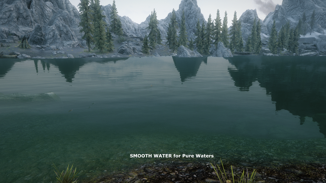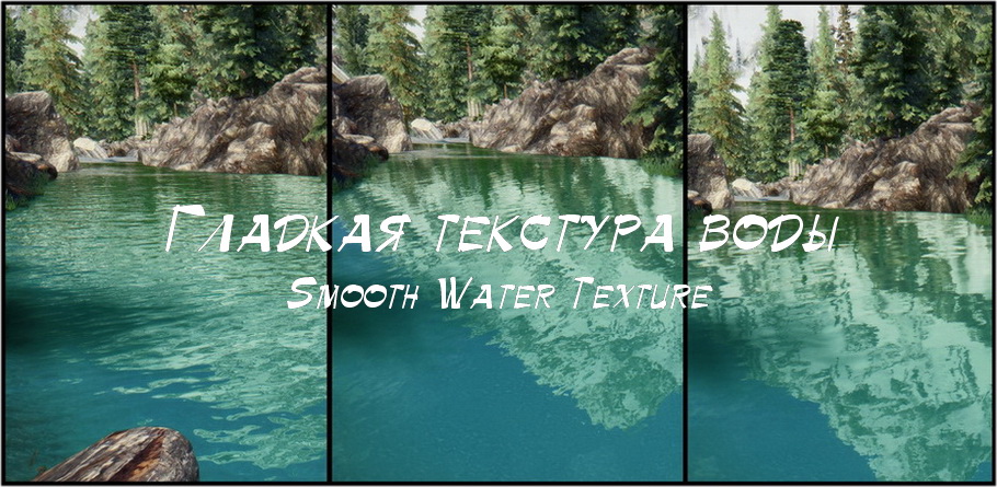 * Мод делает в Skyrim LE воду гладкой, то есть без волн, у таких модов как Реалистичная вода II / Realistic Water Two, Чистые воды / Pure Waters, и оригинальной воды Скайрим.