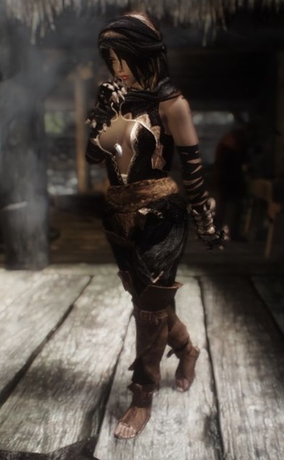 Очень жизненная броня, если вы лорщик или относите себя к таковым. Кто сказал, что главная героиня или особы ее окружающие все свое время посвящают примерке воздушных нарядов? Нет, иногда им приходится брать в руки оружие или применять отточенную до совершенства ловкость и приступать к своим прямым обязанностям - спасать Скайрим.