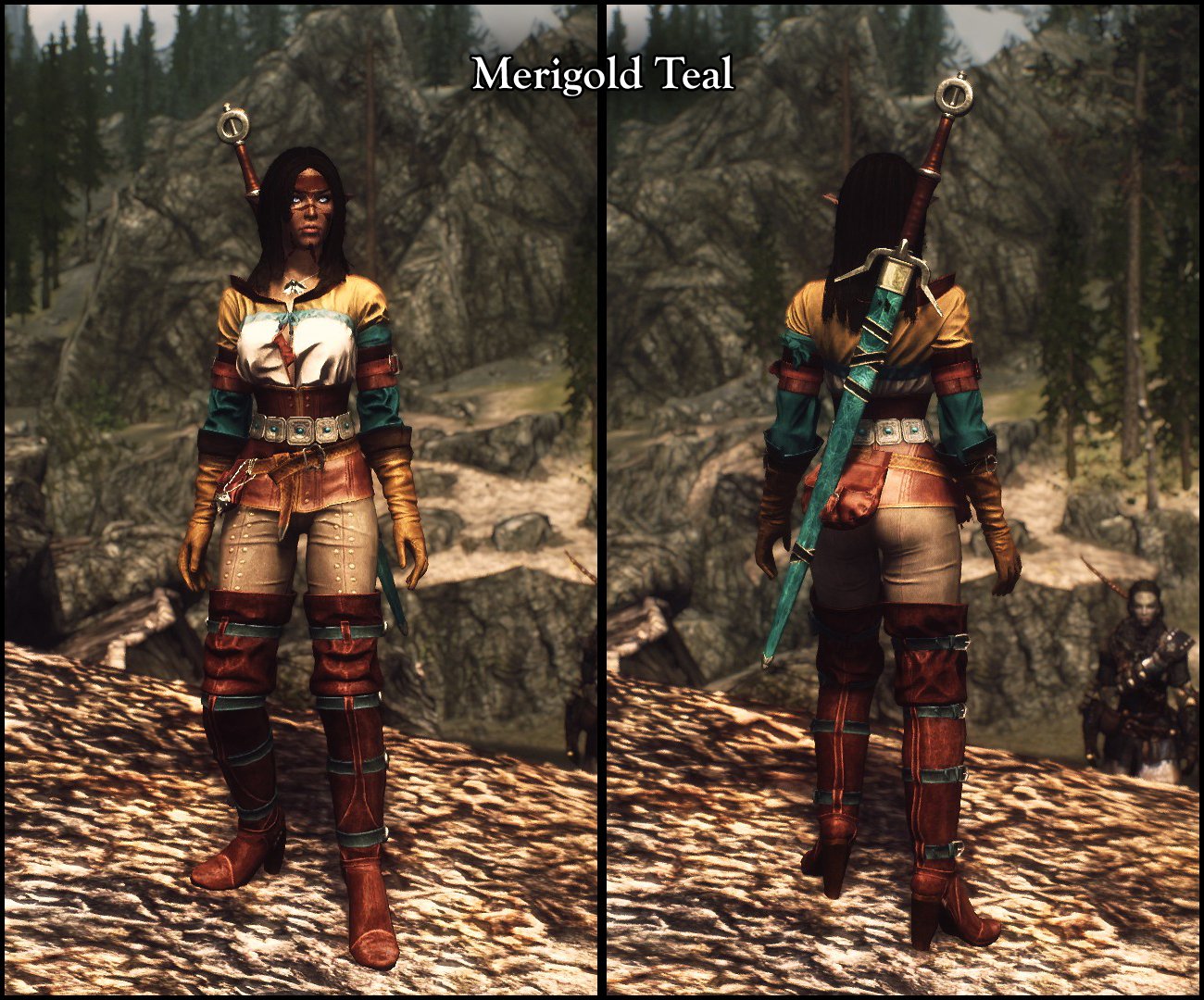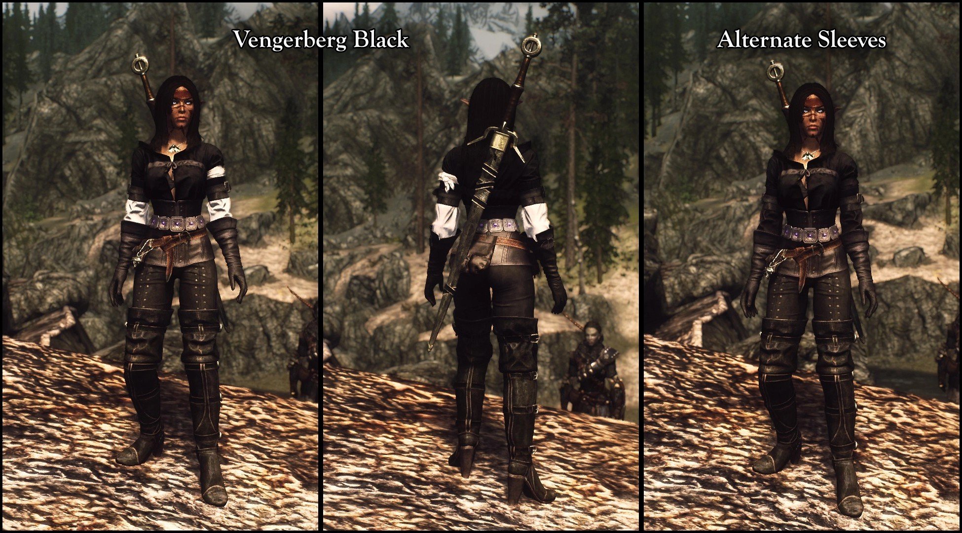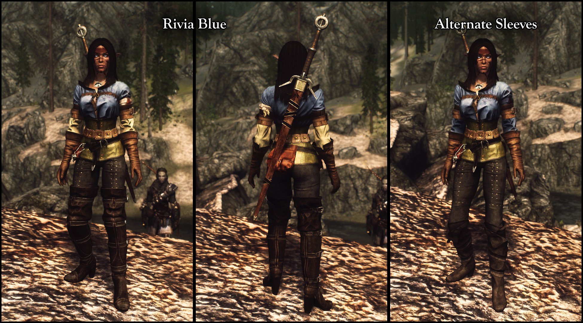 Мод добавляет в Skyrim LE новые расцветки и улучшенные модели одежды Цири из мода Ciri's Outfit (The Witcher) для тел UNP и CBBE. Мод не заменяет оригинальную броню, а добавляет броню с новыми цветами. Ероме добавления новых цветов, мод добавляет улучшенные модели, которые заменяют оригинальные. В них улучшены цвета бликов (specular colors), отражения и кубические карты (cubemaps). В модели оружия интегрирована поддержка DSR. Изготовить сет с новыми расцветками можно в кузнице если у вас в инвентаре есть книга Странник Цинтры. Книгу можно найти случайным образом среди дешёвых книг. Поскольку мод меняет один из уровневых списков, его рекомендуется включить в Bashed Patch. Или введите в консоли help Cintra чтобы узнать id предметов сета.