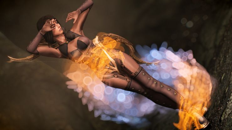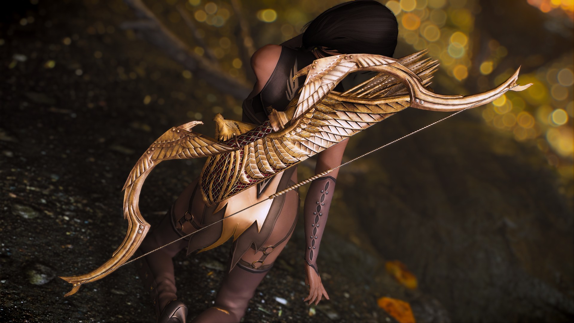 Светлый женский эльфийский наряд, вдохновленный персонажем Ангел из Overwatch, с уникальным луком и стрелами для Skyrim. Сет представляет из себя лёгкую броню. Комплект состоит из кирасы, наручей, сапог, накидки и нимба. Часть предметов сделаны в нескольких вариантах.