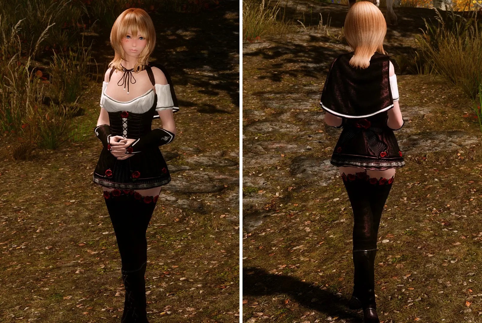 Skyrim SE: Броня сделана для тела UNP (без физики груди и с физикой) и СBBE, а также доступны пресеты BodySlide для BHUNP, CBBE и UUNP. Помимо основного цвета есть дополнительные варианты расцветки брони (2 дополнительных цвета для UNP/BHUNP и 5 дополнительных цветов для CBBE).