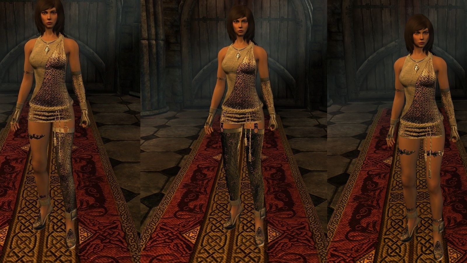 Мод добавляет в Skyrim эльфийскую броню для женских персонажей, а также булаву, щит и уникального коня в доспехах. В комплект входят: одеяние, туфли, перчатки, нарукавники, юбка, наголенники, амулет, плащ, трусы, набедренник и повязка на голову. Изготовить броню можно в кузнице. Рецепты будут доступны только если у вас в инвентаре есть руководство по изготовлению. Руководство находится в Храмt Кинарет в Вайтране. Лошадь находится рядом с Вайтранской конюшней.
