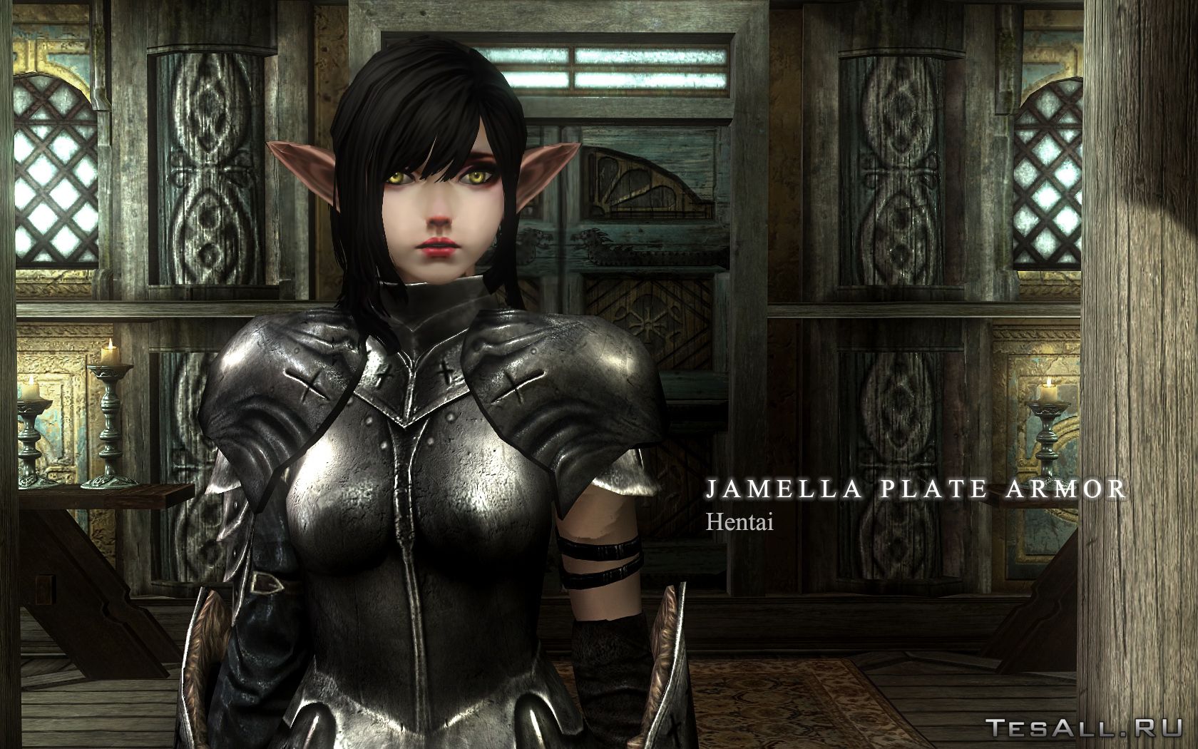 Добавляет в игру женские доспехи Джамеллы, которые можно создать и улучшить в любой кузнице. У доспехов характеристики, как у стальных пластинчатых, шлем сделан невидимым, что вы могли получить бонус от комплекта и при этом любоваться лицом своего персонажа.