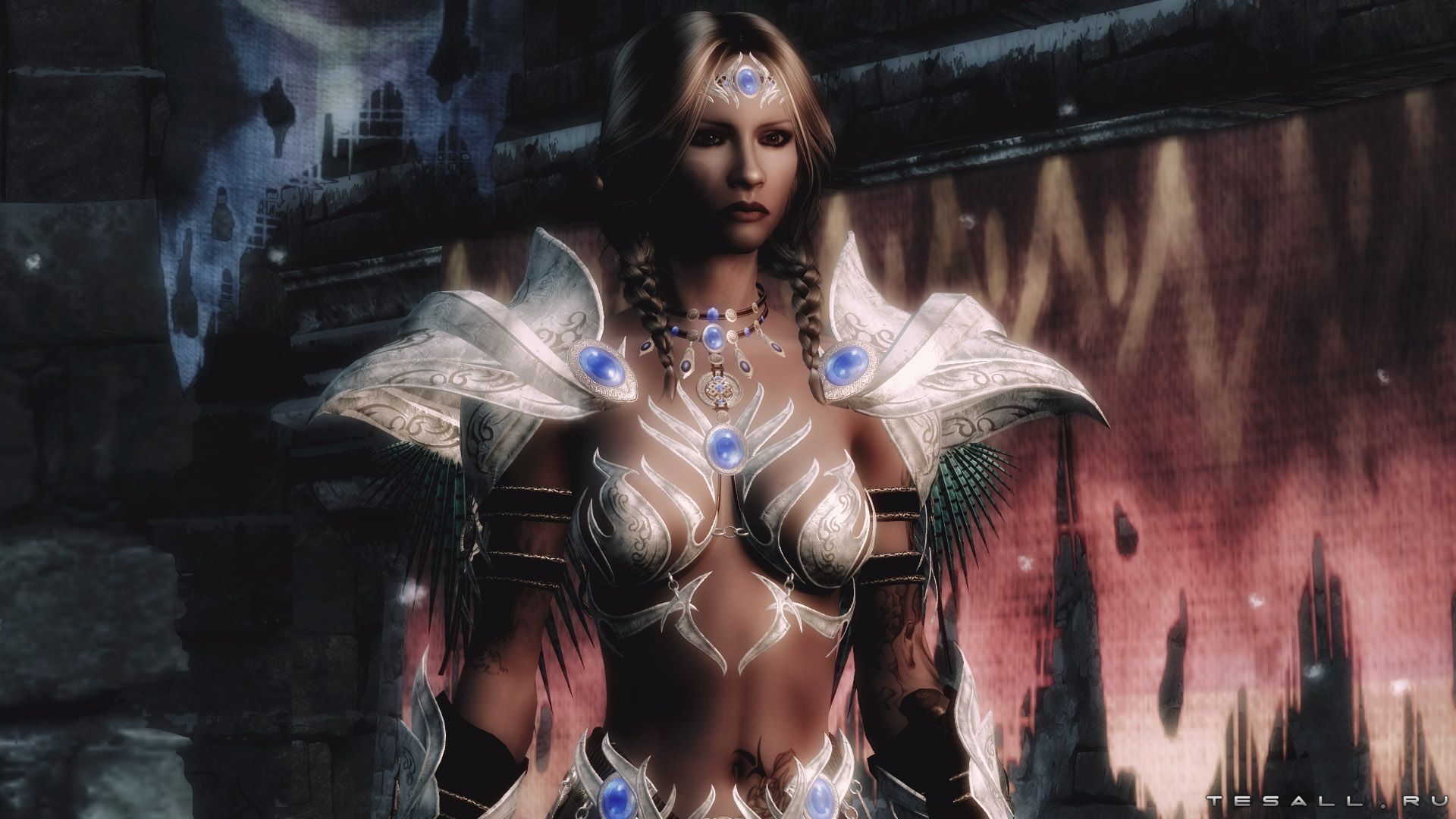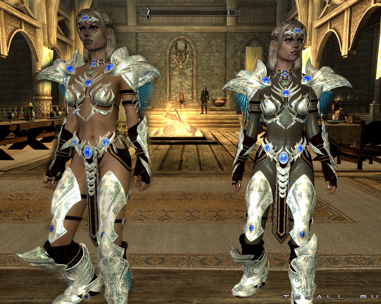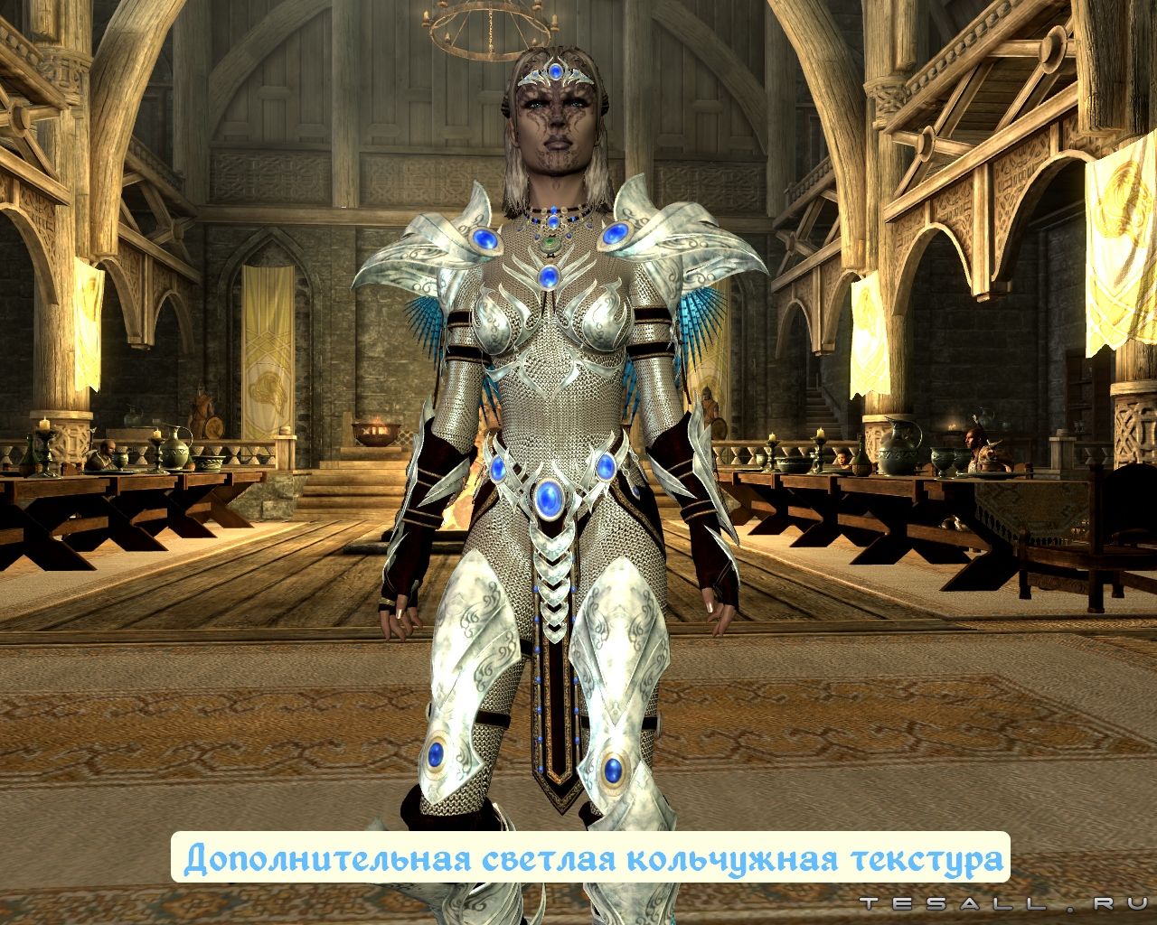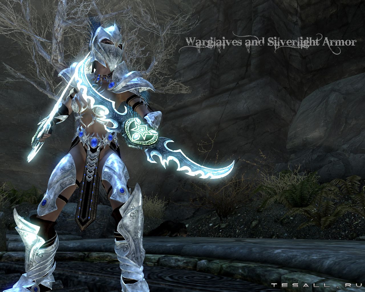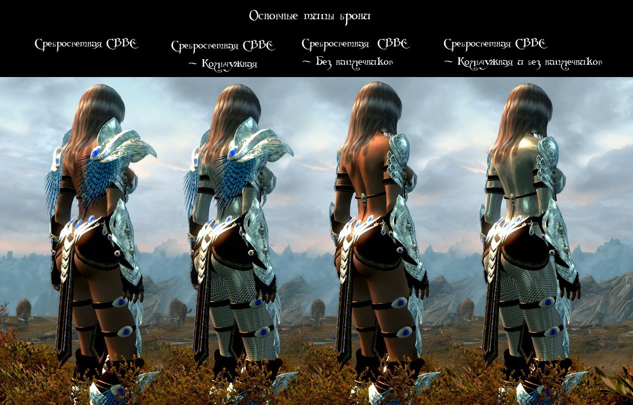 Добавляет игру новую легкую женскую броню под названием "Сребросветная" (варианты с кольчугой и на голое тело). Броня состоит из перчаток, шлема, сапог, закрытого шлема, обруча, кирасы.