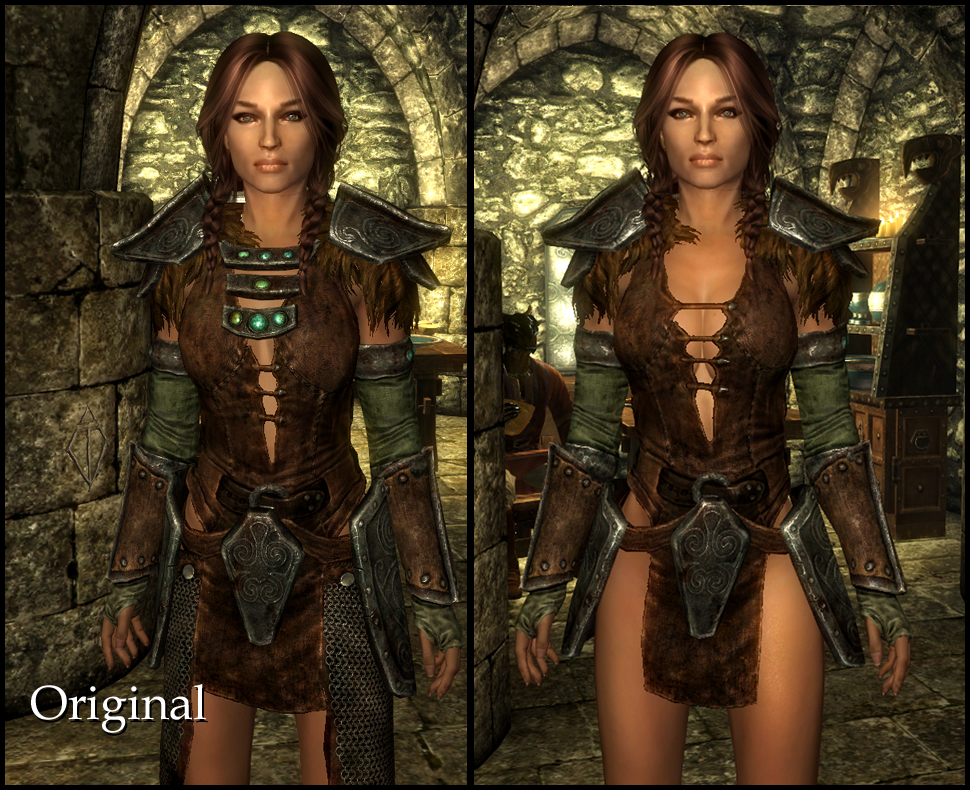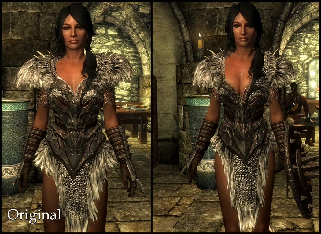 Реплейсер игровой древней нордской брони для дамских тел CBBE. Совершенно новые красивые модели и текстуры. Опционально в моде так же присутствует реплейсер Шкуры Спасителя - ценного артефакта.