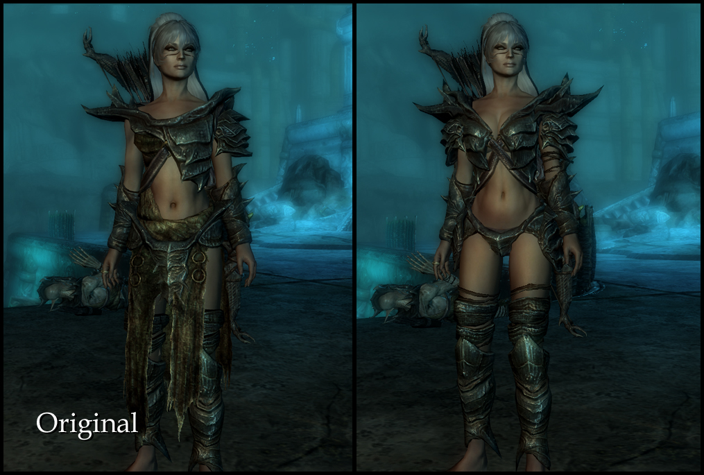 Прекрасную броню Темного искателя в фалмерском стиле вы можете выковать самостоятельно. Или вы можете установить файлы из папки Опционально - там находится реплейсер игровой фалмерской брони под CBBE, заменяющий ее модели и текстуры.