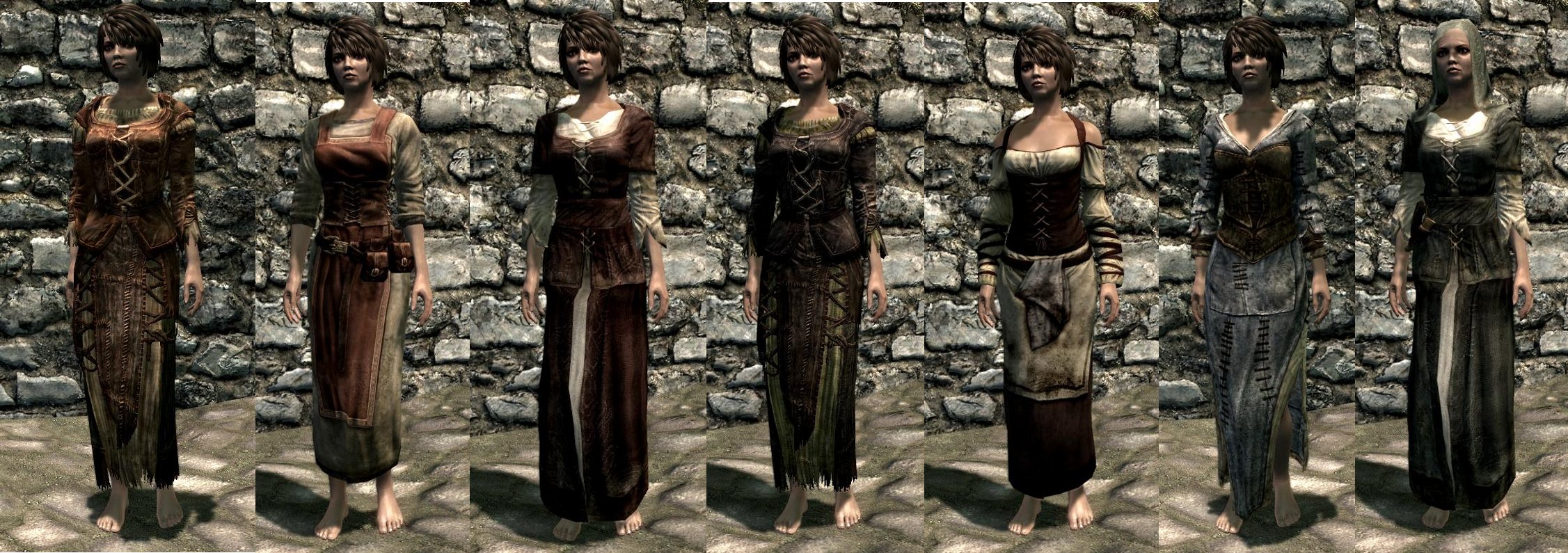 - несколько вариантов вещей под UNPB (фалмерская, драугрская, изгоев, сыромятная, дамская одежда и одежда бандитов)
