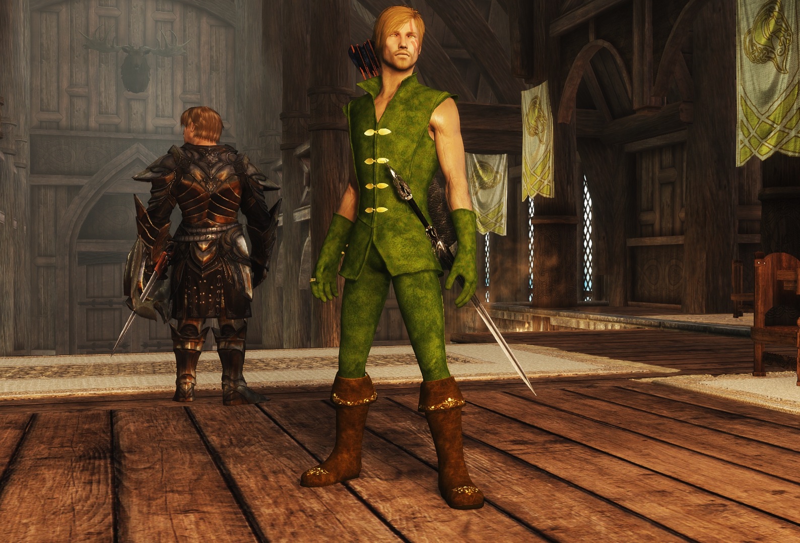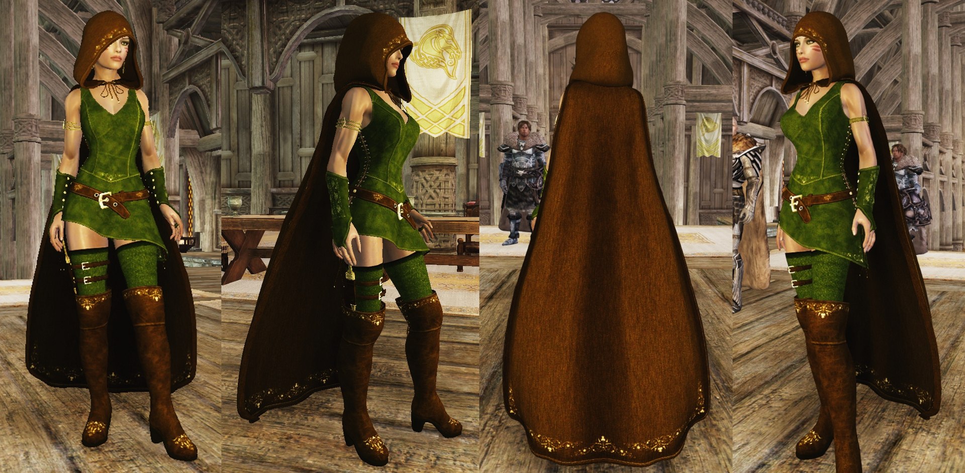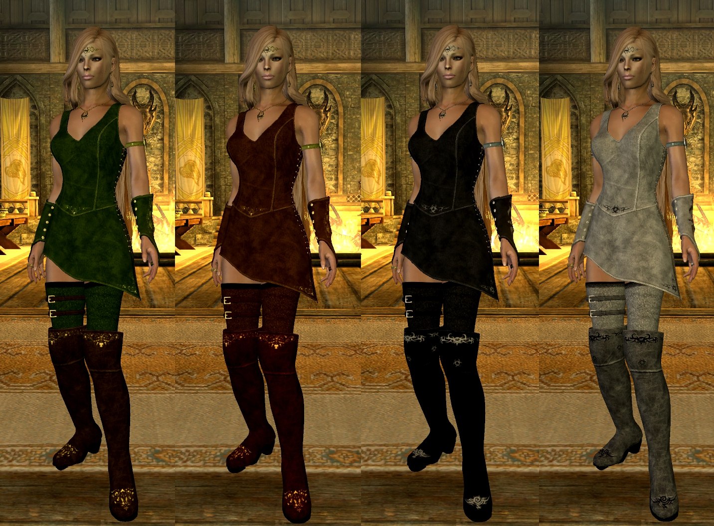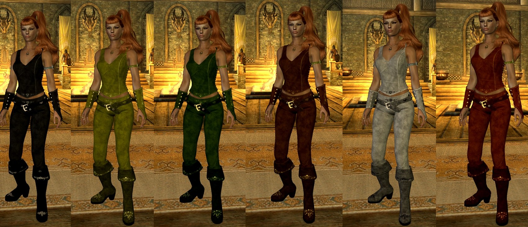 Прекрасный и весьма популярный мод, просто куча вещей для комбинирования между собой и с другими подходящими плагинами, здорово подойдет для лучниц и охотниц, если вы любите отыгрыши. Замечательно, что теперь можно представить на сайте такой приличный комплект в нескольких цветах и с разными штучками.