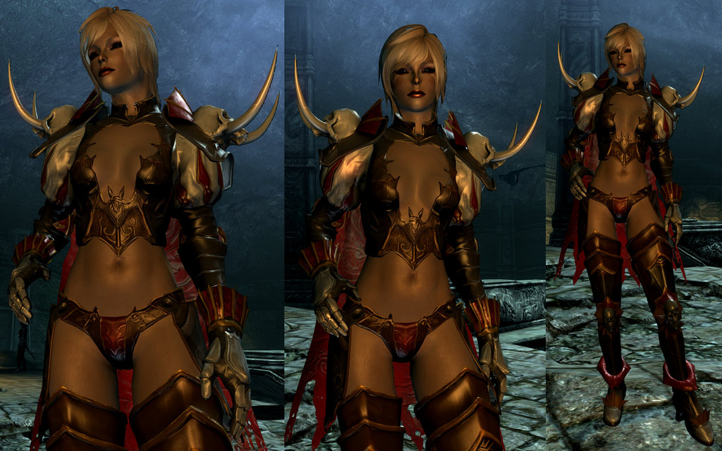 А теперь по вашим многочисленным заявкам в нашем стриптиз-клубе выступает "рыцарь-вампир" Анжела! А если серьёзно, то это защищает почти так же, как женская броня Изгоев. А почему вам не кажется, что женская броня Изгоев - бронелифчик? Другое дело, что у неё по понятным причинам низкие характеристики, а большинство бронелифчиков сильнее, чем Даэдрическая броня.
