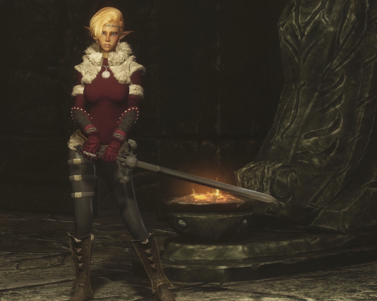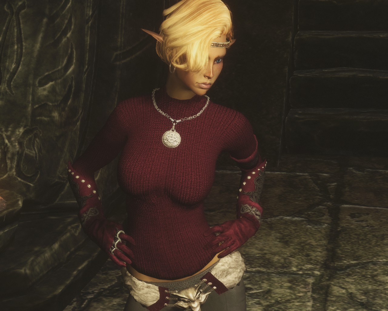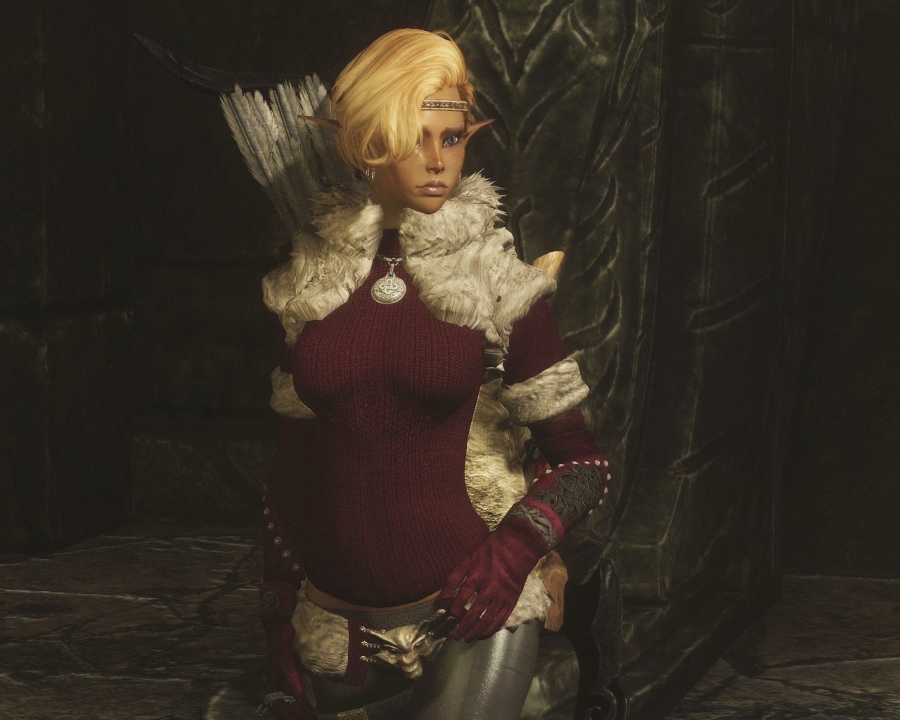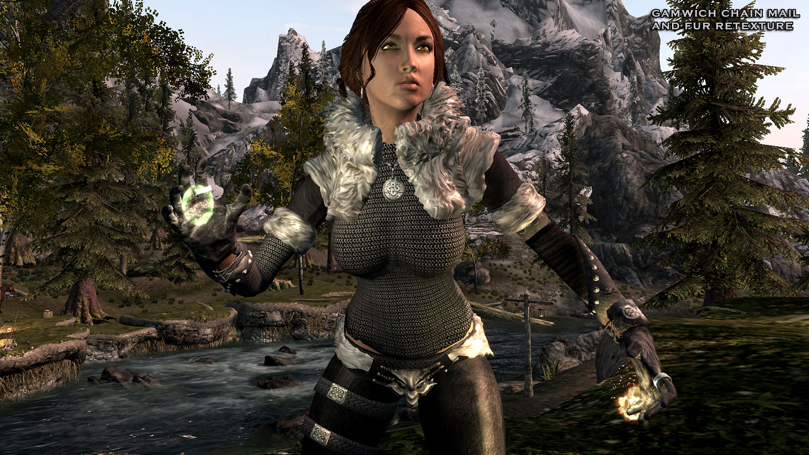 Добавляет в игру броню северянки, как можно догадаться, это броня для персонажей женского пола, использующих тела UNP. Броню можно создать в разделе сыромятного, а вот амулет изготавливается в разделе драгоценностей.