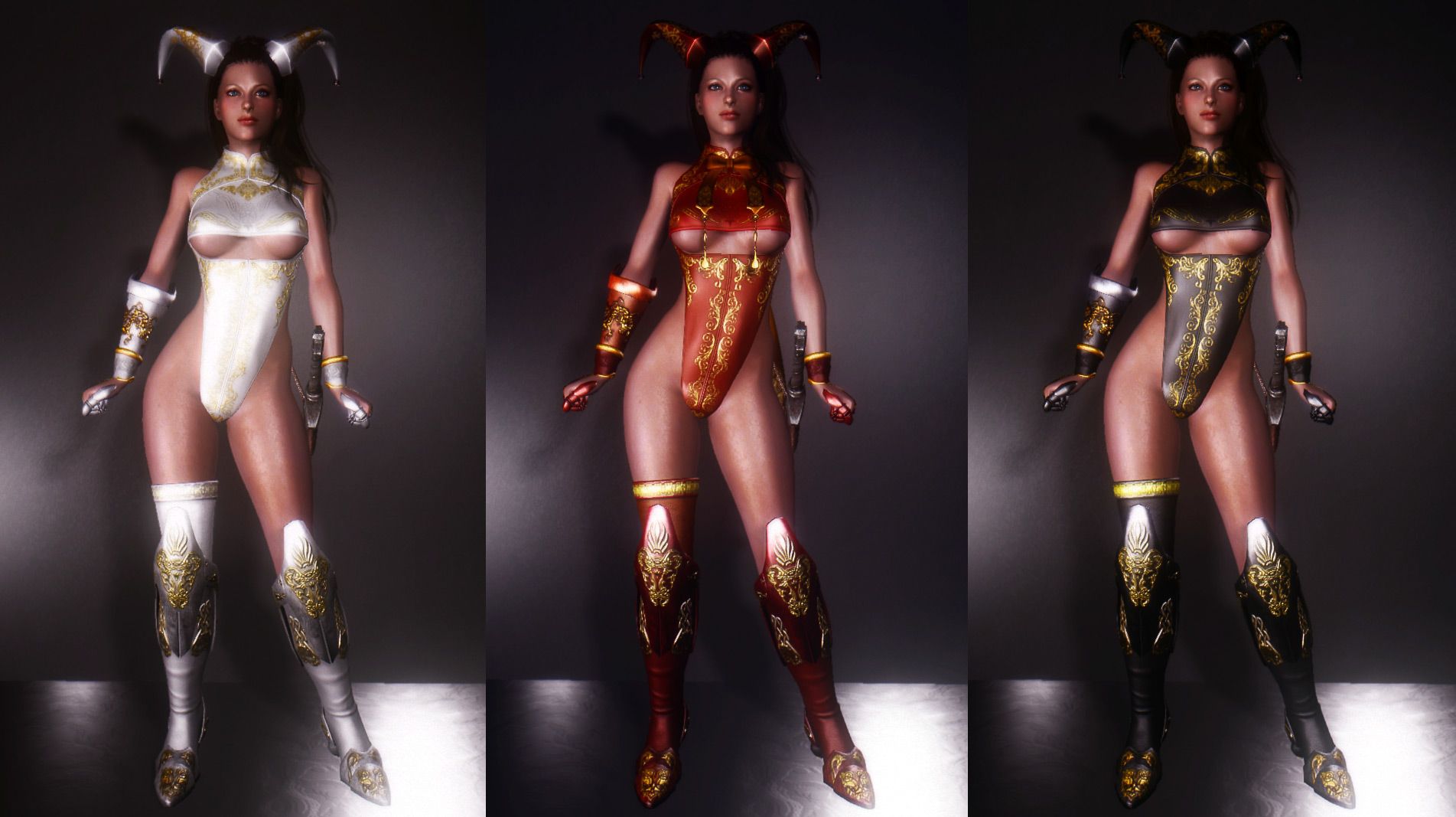 Комплекты брони чертовки исключительно для дам. Поддержка трех реплейсеров, включая Dream Girl. Найти броню можно в сумке в форте Греймур (подробности см. скриншоты в архивах). Выберите один архив для используемого типа тела.