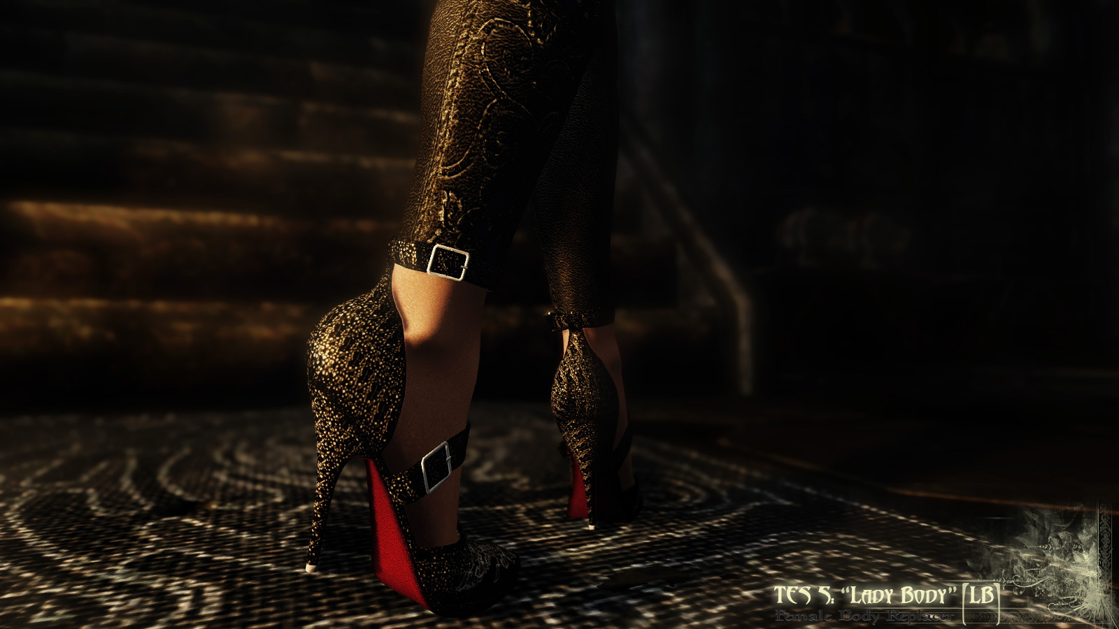 -Добавлен третий комплект, который является результатом эксперимента при попытке добавить в игру туфли на высоком каблуке. При этом сохранив пропорции и анатомичность. И конечно же, без использования SKSE и прочего мусора (так называемых систем удлинения ног) которые калечат все тело персонажа. Единственным минусом комплекта, является сам факт того, что он цельный и у вас не будет возможности использовать эти туфли с другими комплектами.