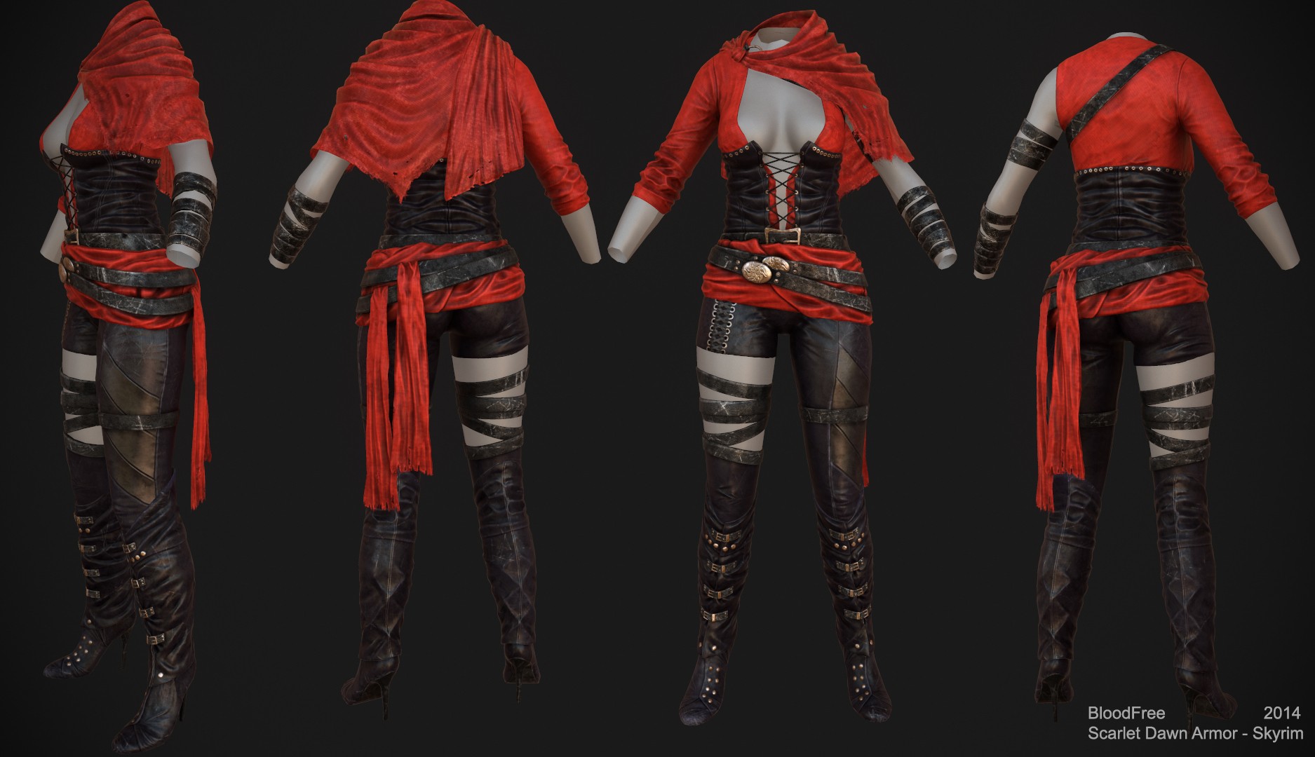Скомпоновал все виды ретекстуров в один плагин, теперь можно скрафтить броню разных цветов, кому надо забирайте. Меши для тела UNP, присутствуют все варианты цвета доступные на данный момент(к синей броне прилагается чёрная шаль, по причине отсутствия её ретекстура, как появится обновлю), доступные варианты цвета: чёрный, синий, зелёный, красный, полностью белый и белый с красным поясом-для брони, и чёрный и коричневый-для сапог. Разрешение 4К, вес 112 Мб. Если обнаружите недоработки, пишите, хотя вроде бы всё проверил.