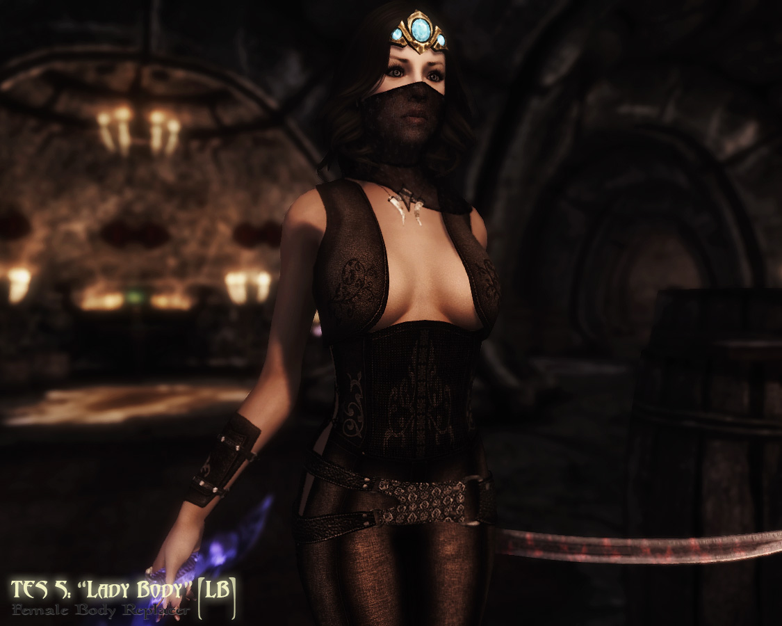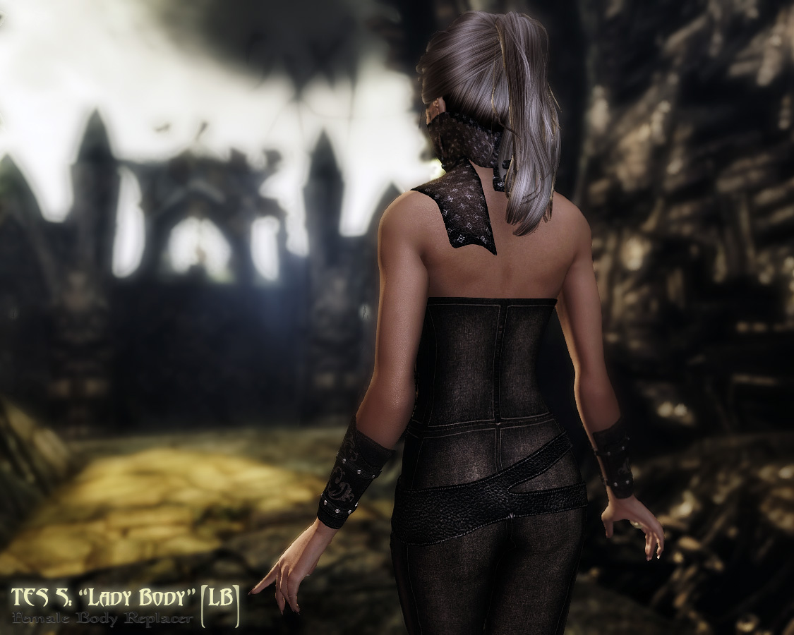 В дополнении DLC "Dragonborn", создатели игры обещали новый комплект легендарной гильдии наемных убийц Мораг Тонг. К сожалению... этим обещанным комплект оказался обычным ретекстуром Хитиновый брони, который (по непонятным мне причинам и не поддающийся логическому объяснению) - хуже обычных Хитиновых доспехов (тяжелей и меньше защиты). Решила исправить эту оплошность создав свою версию для LB тела.