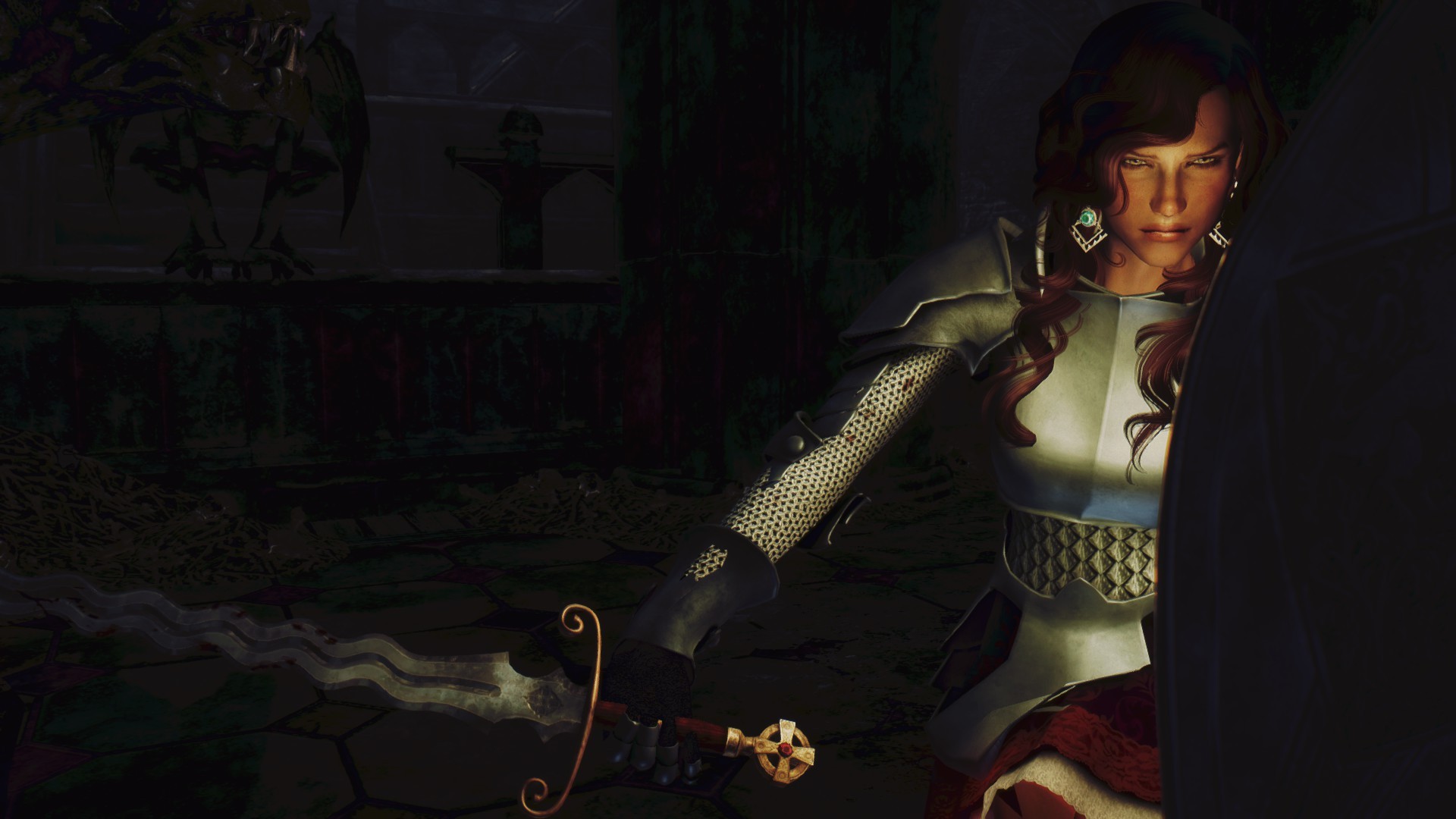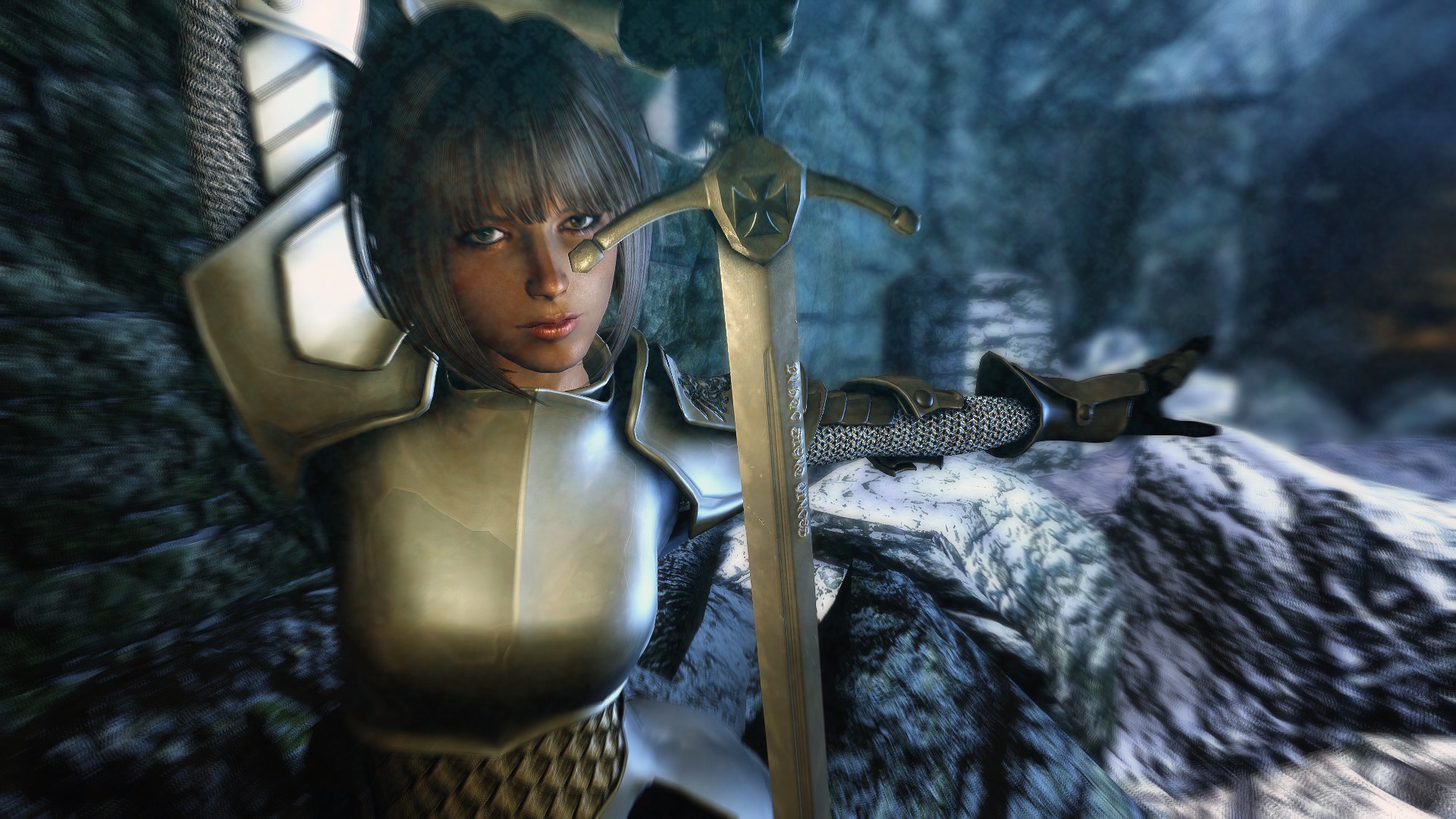 Добавляет в Скайрим женский комплект тяжелой брони и двуручный меч. Характеристики данных предметов, как у даэдрических. Куются они в даэдрическом разделе. Шлем специально сделан невидимым, чтобы вы могли видеть лицо своей героини и при этом получать все бонусы полного комплекта брони.