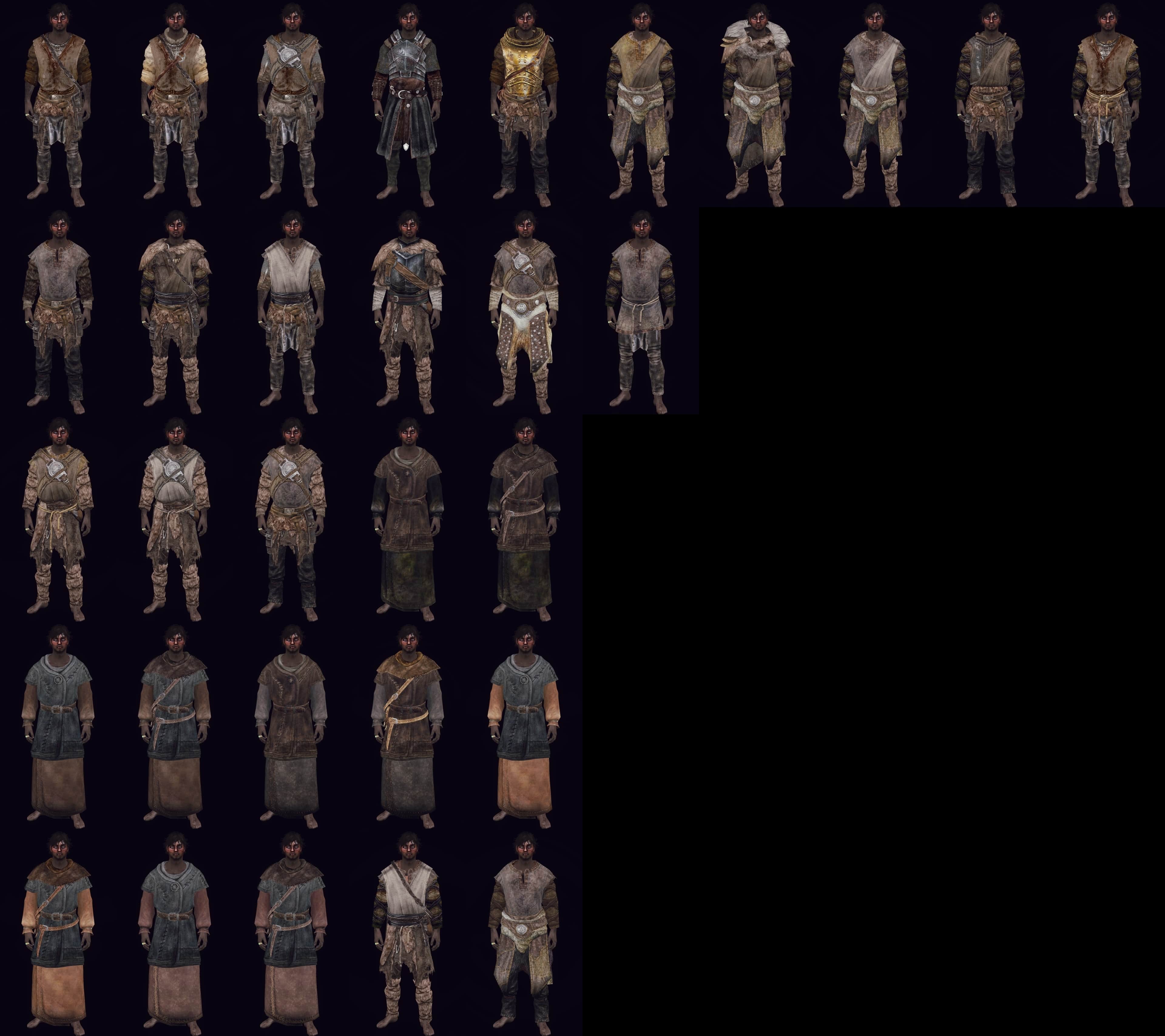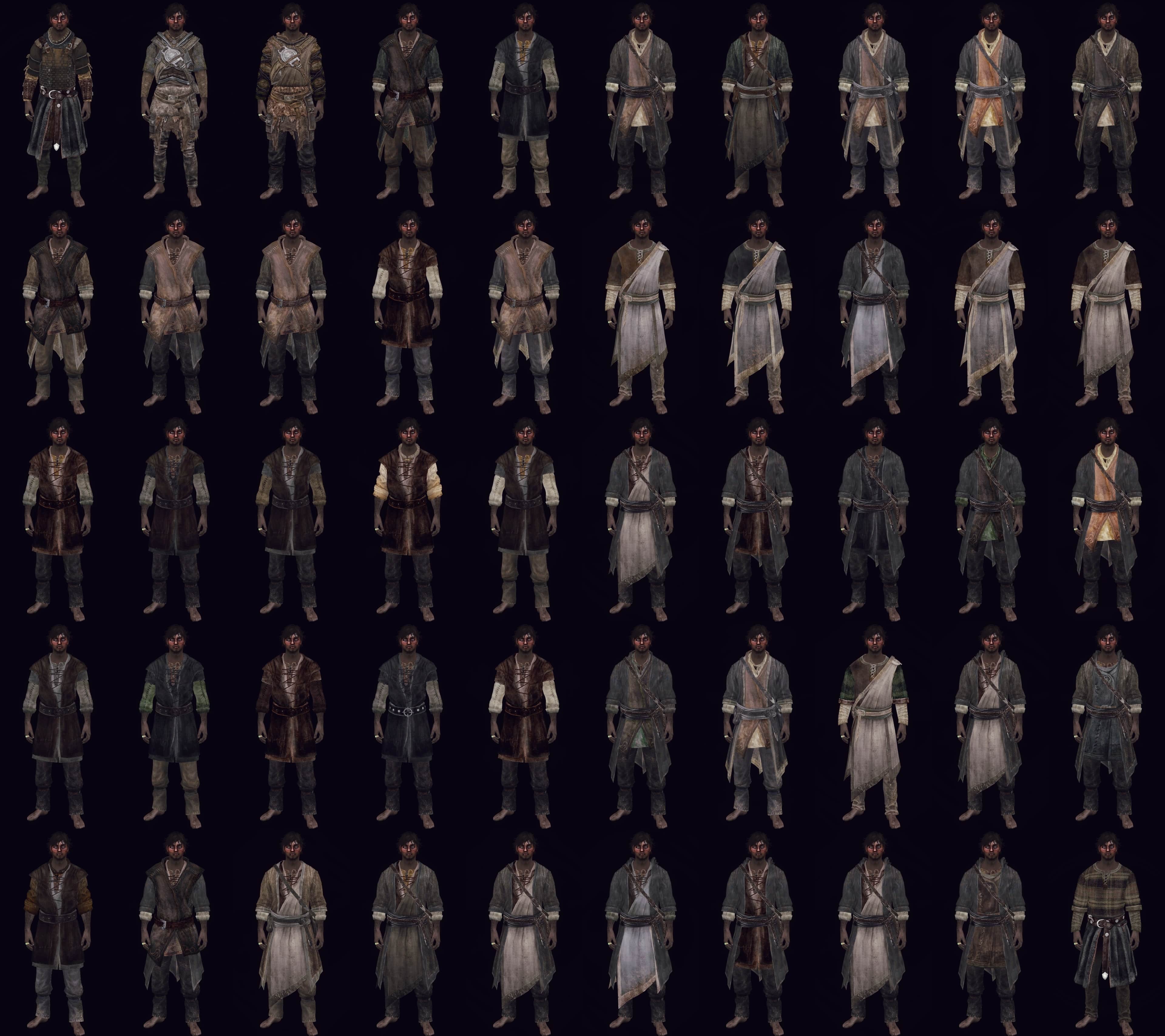 - Распределение брони и одежды было переработано с нуля. Было исправлено много ошибок: появление множества наборов брони у NPC, перемешивание уровневых списков зачарованной одежды с обычной или неправильные требования к уровню брони. Больше NPC имеют доступ к большему разнообразию одежды, чем раньше. Бандиты имеют доступ ко всем новым доспехам. Граждане больше не носят новые доспехи, потому что они часто им не подходят