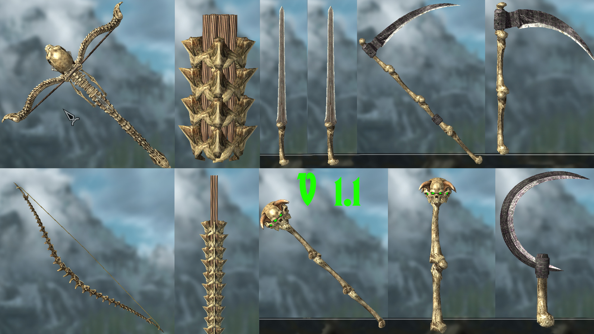 Изменил крафт(Теперь крафтица в любой кузне в разделе костяное, ПРИ НАЛИЧИИ ПЕРКА НА СЛОЖНЫЕ ВИДЫ ДОСПЕХОВ), добавлен щит, изменен внешний вид оружия и добавлено новое оружие, такое как арбалет, топор,булова одноручная и двуручная(Специально по прозьбе желающих), мечи одноручный и двуручный.