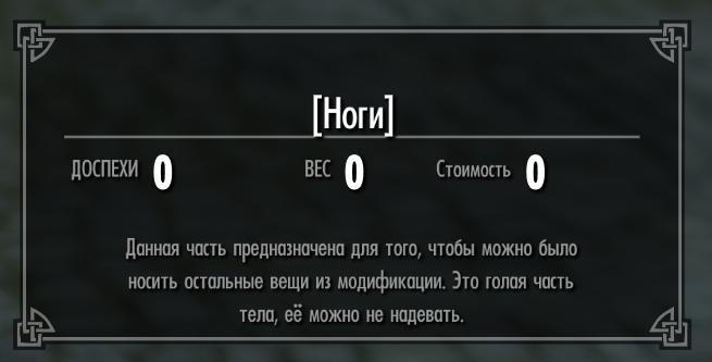 «Помните, когда в Морровинде у вас могли быть разные наплечники? И как вы были потрясены, когда обнаружили, что поножей нет в Скайриме? Что ж, горя больше нет! Этот мод направлен на то, чтобы вернуть все это! Вы больше не будете вынуждены носить цельные костюмы! Вам больше не придется скачивать тонны модов на броню, чтобы получить вариативность! Ваш персонаж больше не будет выглядеть таким несвежим и невзрачным! Потому что теперь вы действительно можете создать своего персонажа и чувствовать себя потрясающе с вашим собственным индивидуальным набором доспехов!» - пишет автор мода, Mopel