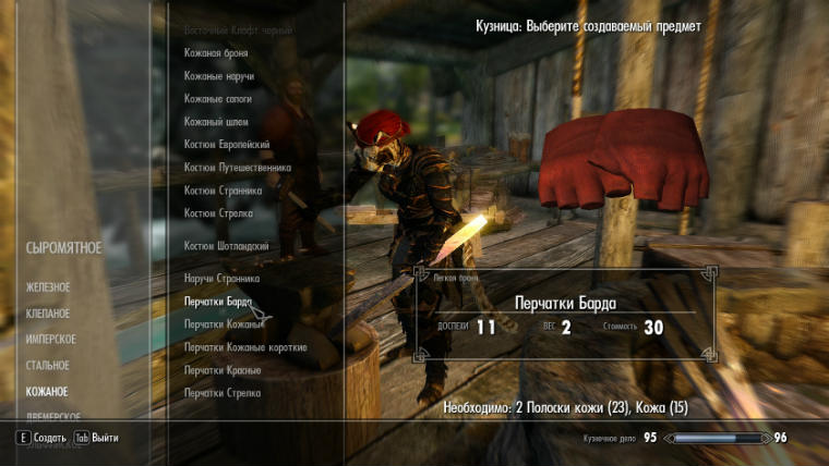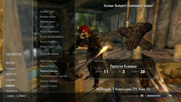 Все крафтится в кузне, раздел "кожаное", "Клепаное". Нужны перки, минимальный - "Стальное", максимальный - "Стеклянное", т.к. статы немного выше, чем у стандартных.