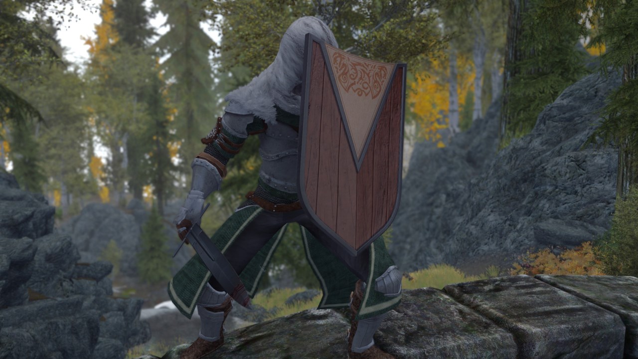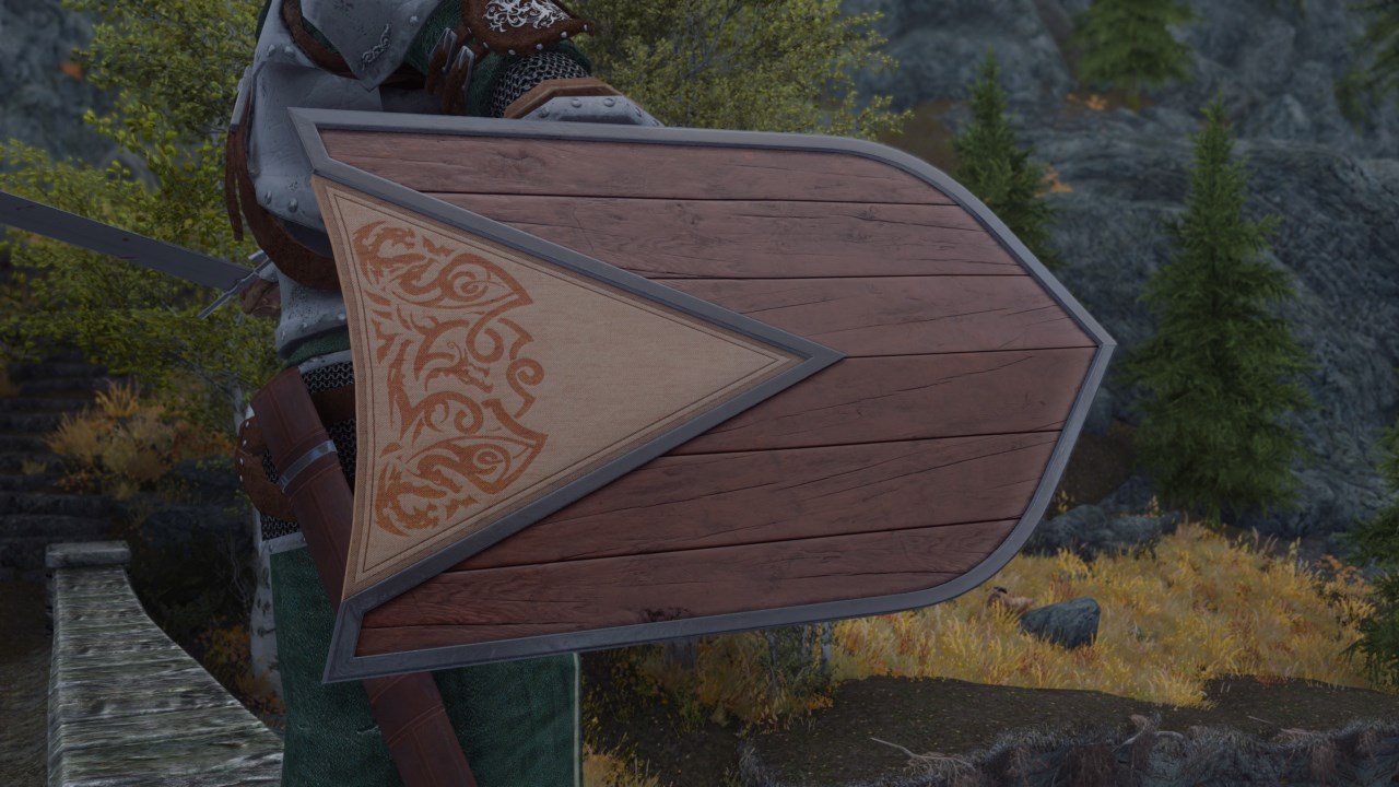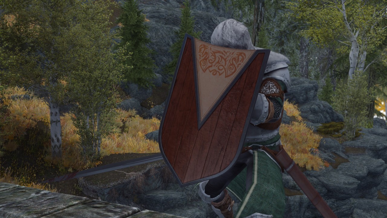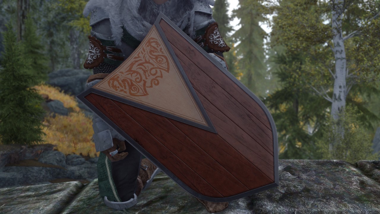 Этот мод добавляет щит путешественника в Скайрим. Щит путешественника можно найти в Пещере Сосновый Пик (см. картинки). В кузнице его можно перековать из тяжелого варианта в легкий вариант.