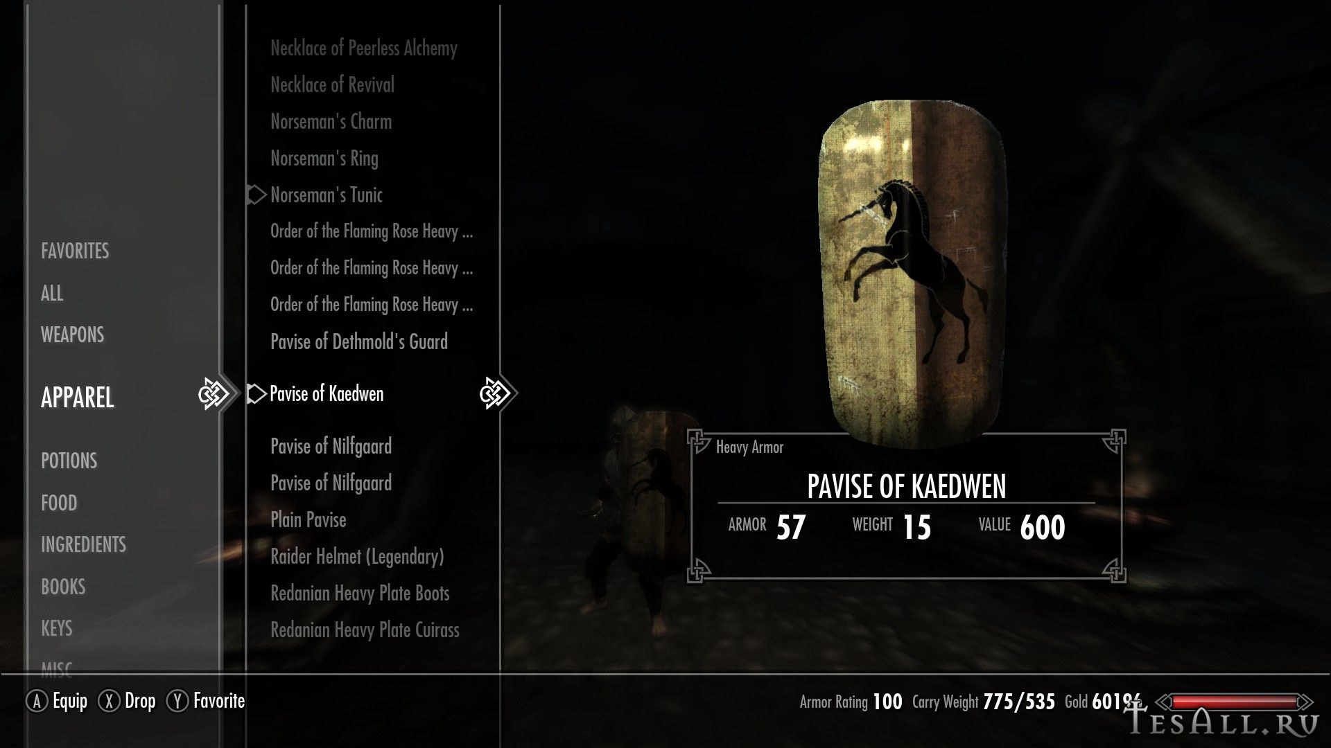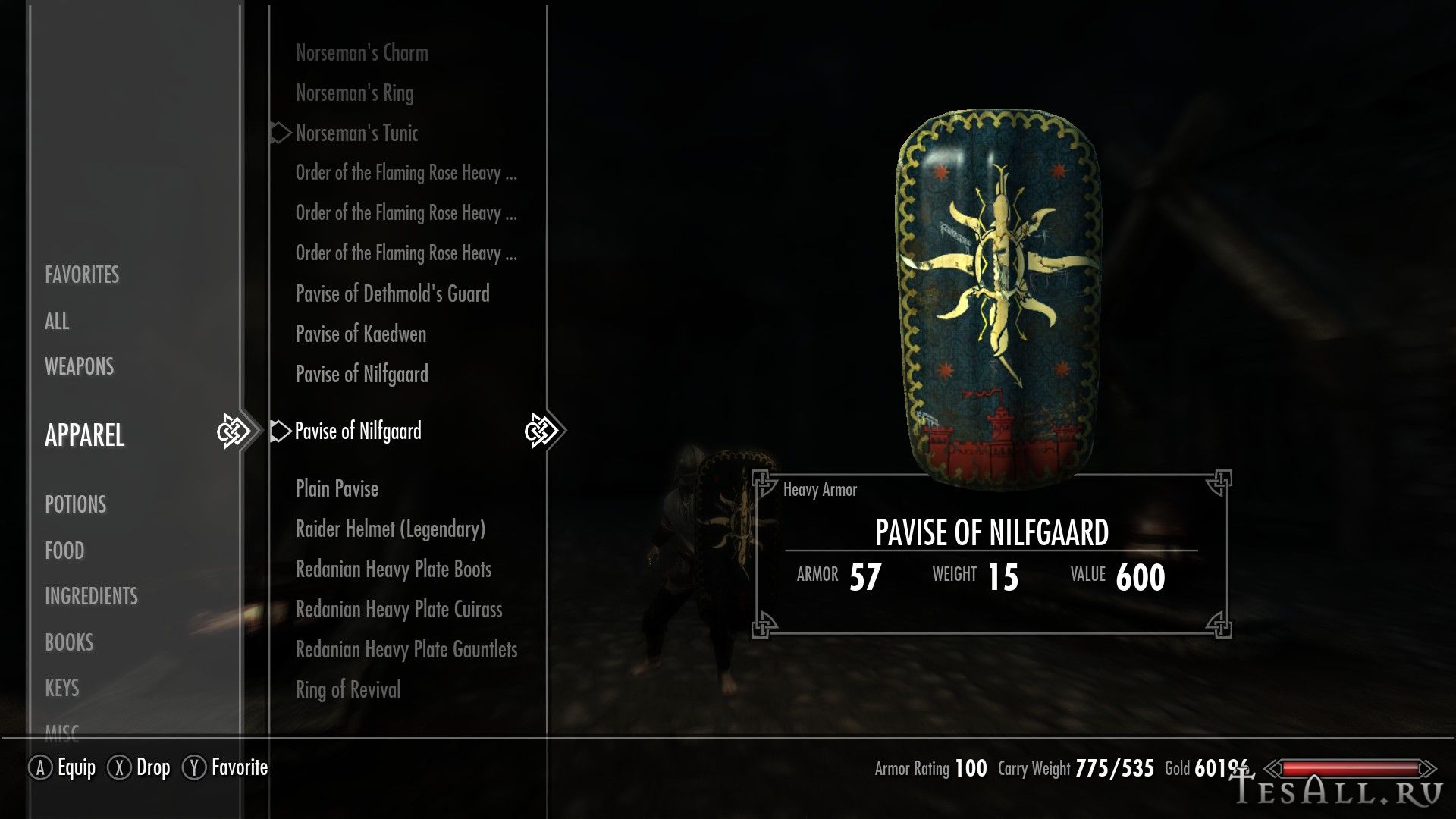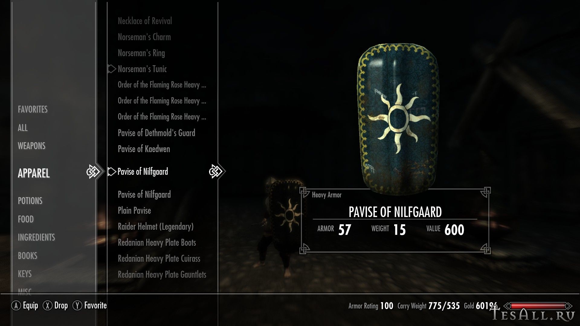 Плагин добавляет в Скайрим 9 щитов, 5 павез, 4 длинных каплевидных щита, 1 щит с шипами, 1 круглый щит из игры Ведьмак 2.