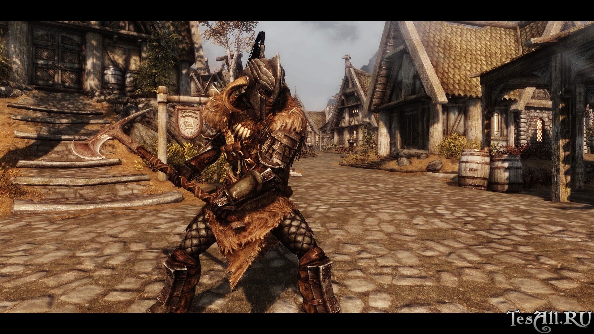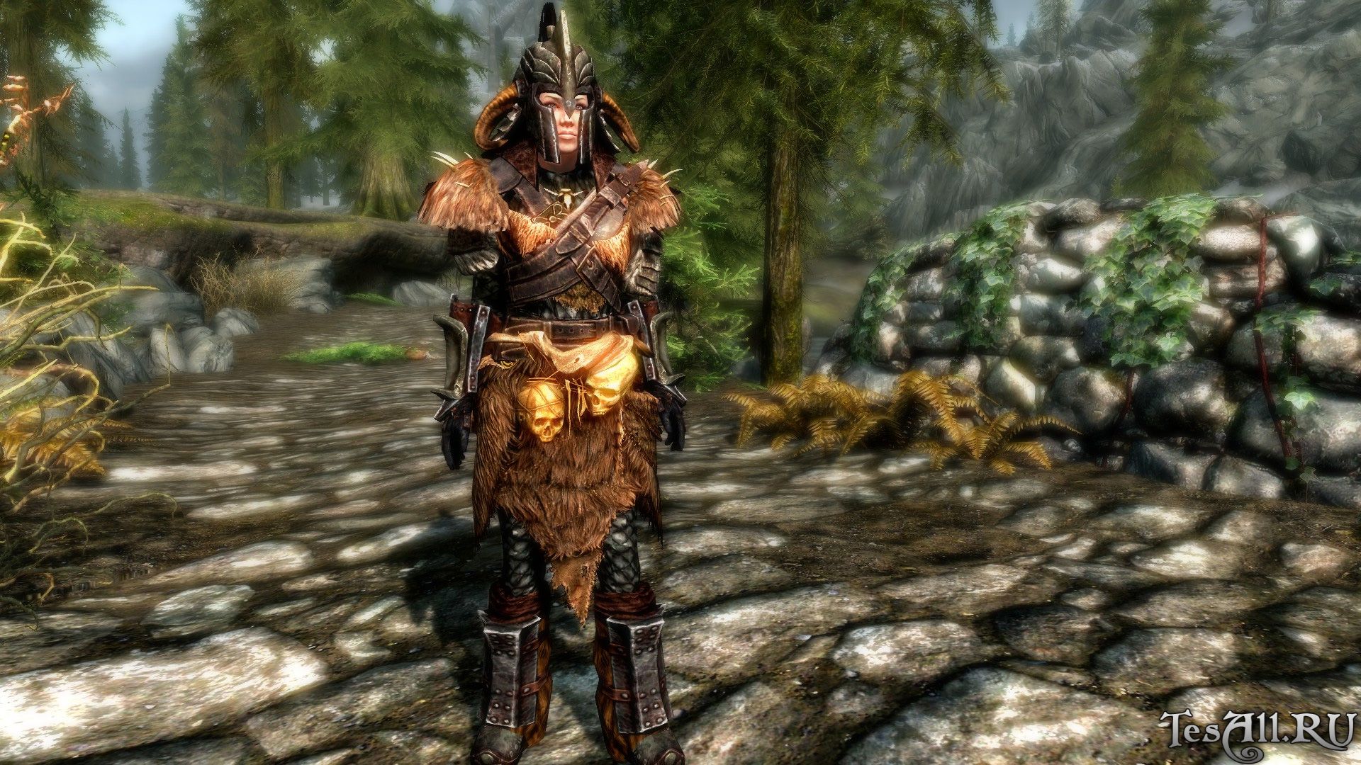Находится в секции орочьего, и требует соответствующего перка. Хаджитам и аргонианам не подходят головные уборы, но этот сет прекрасно смотрится с игровым орочьим шлемом.