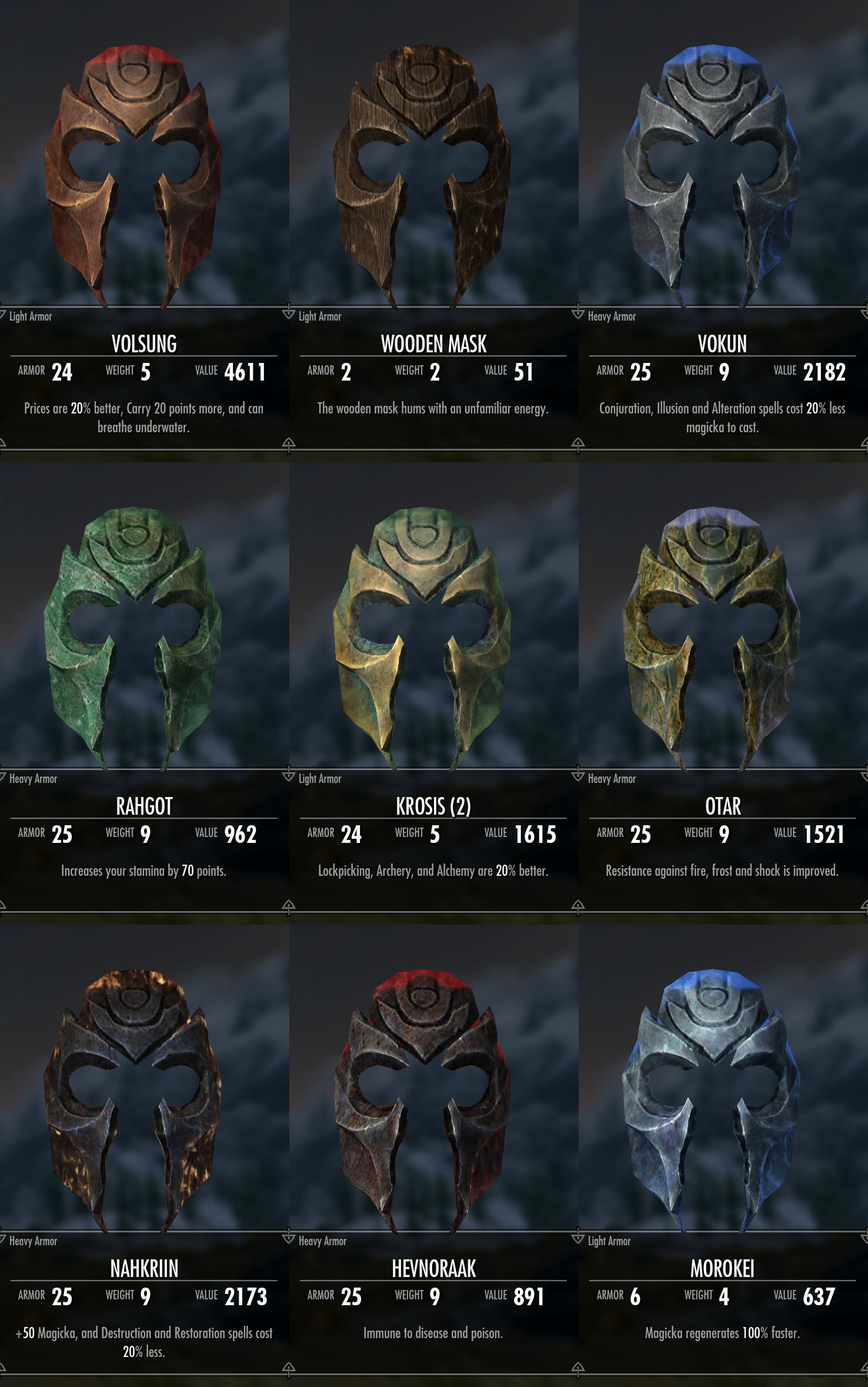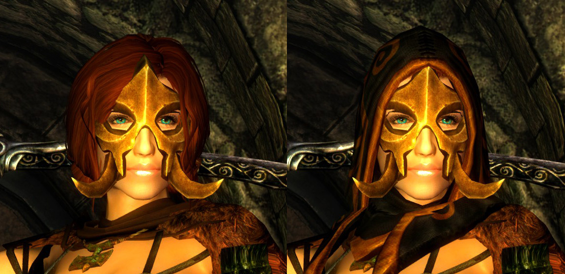 Заменяет маски драконьих жрецов открытыми версиями, в которых видно лицо. Мод предназначен для тех, кому не нравятся страшные рожи на масках. Теперь маски занимают отдельный слот так что их можно носить с любыми капюшонами, или вообще без них.