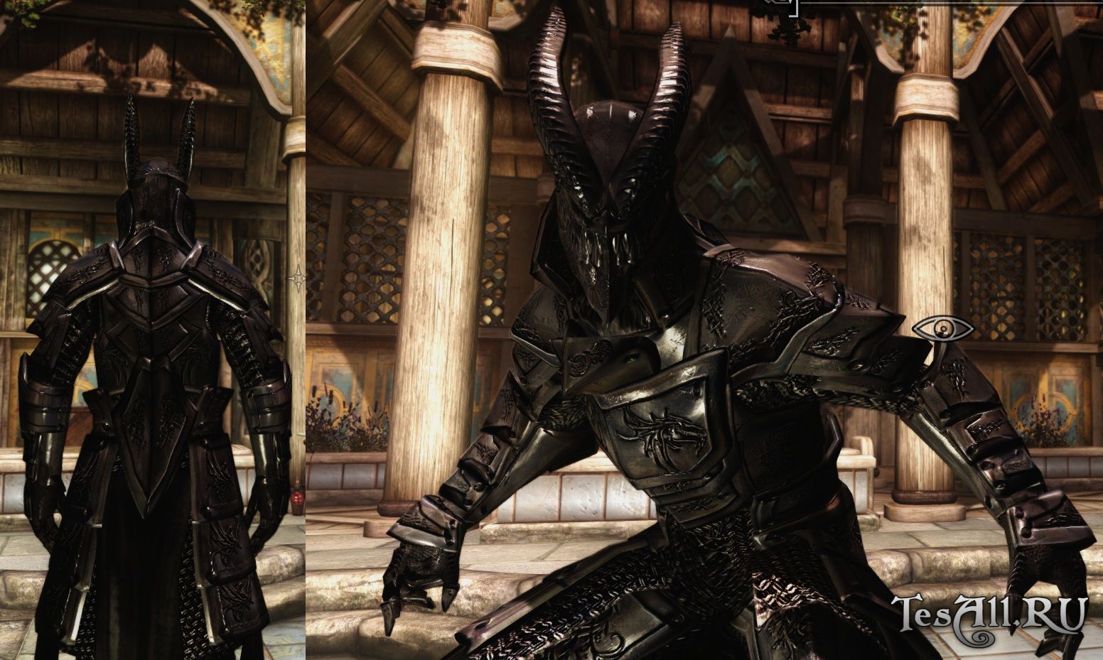 Вы можете найти броню в сундуке на галерее Драконьего Предела в Вайтране, но так же можно создать и улучшать ее самим, если у вас открыты перки драконьей и сложной брони. Подойдет дамам.