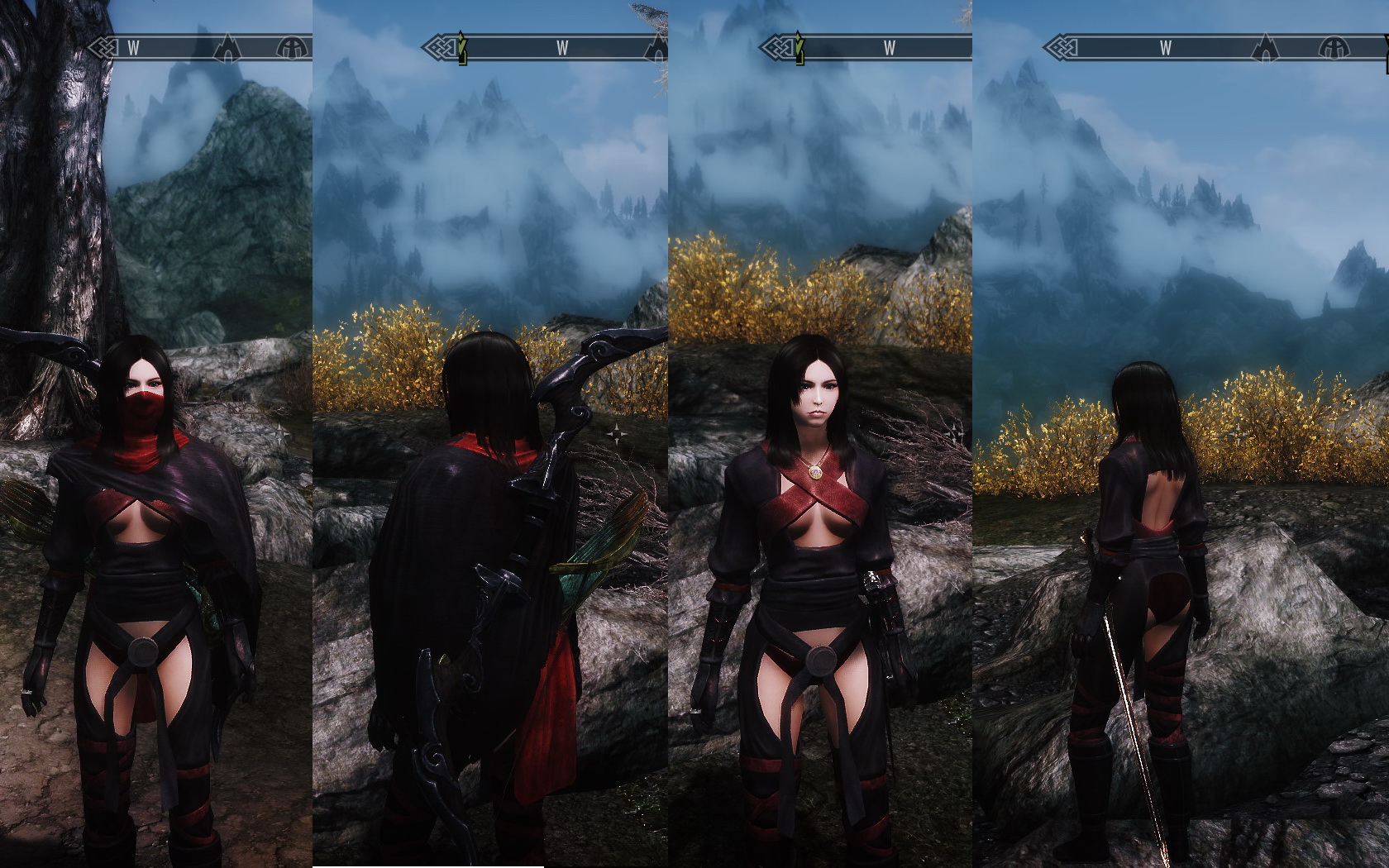 Плагин добавляет 1 комплект брони и 2 меча. Превосходная броня относится к классу легкой брони и подойдет, как мужским, так и женским персонажам (Совместимо с CBBE и UNP), также добавлена тряпичная версия. В состав комплекта входит броня, сапоги, перчатки. Для их создания не требуются навыки, сами они находятся в разделе стального, тряпичная версия в разделе разного. Костюм ассасина - одежда для женских персонажей. Броню можно купить в темном братстве, а тряпичный вариант продается в магазине "Сияющие одежды", что в Солитьюде.