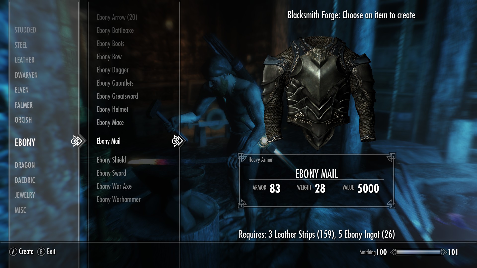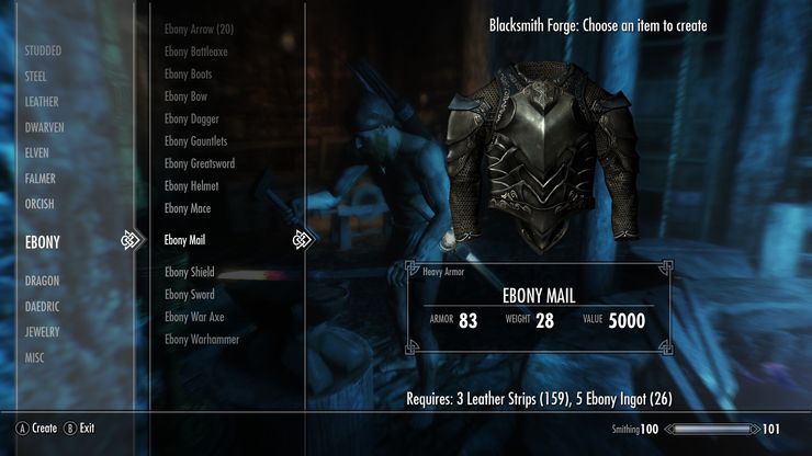 Теперь вы можете самостоятельно выковать эбонитовую кольчугу. Разумеется, без любых зачарований, так что сам артефакт останется уникальным. По сути, это просто разновидность эбонитовой брони. Улучшается, зачаровывается.