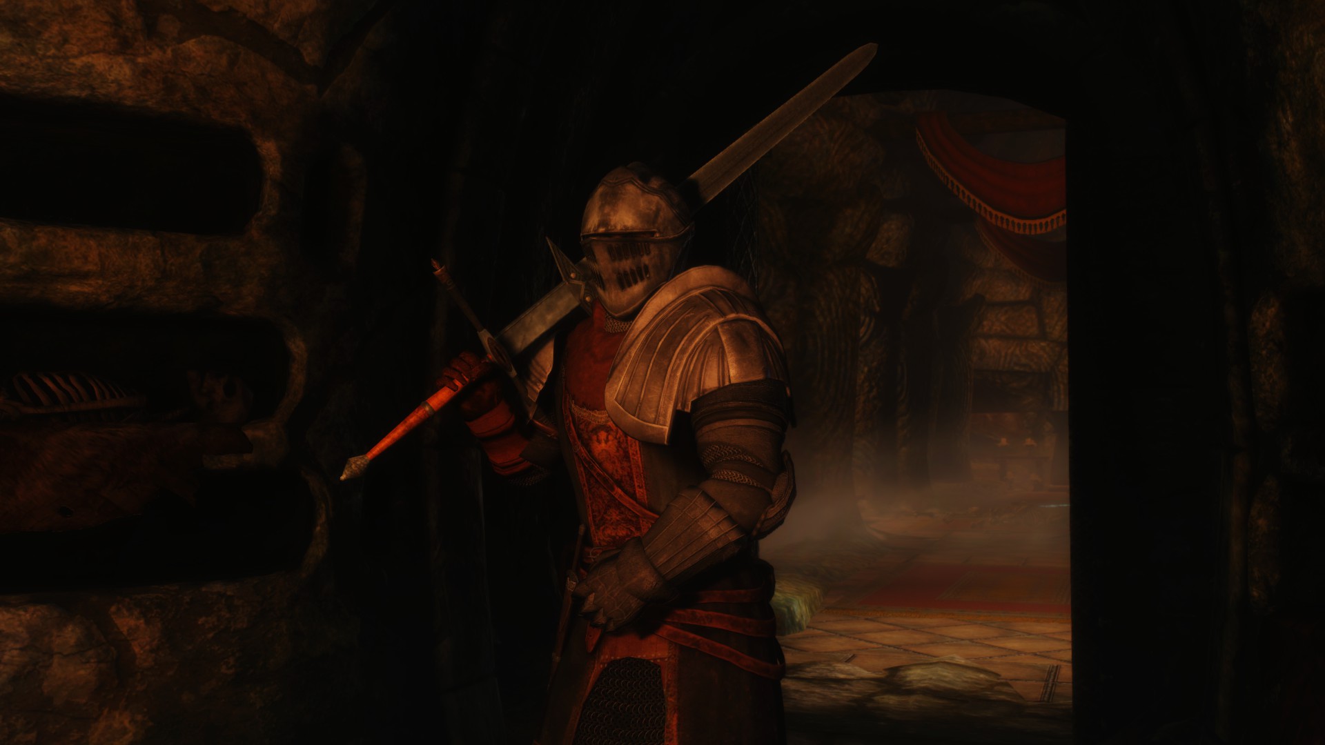 Плагин добавляет в Скайрим рыцарскую броню и оружие из игры Dark Souls. Найдете вы новые предметы, лежащими в гробу, который находится в катакомбах Зала мертвых Вайтрана.