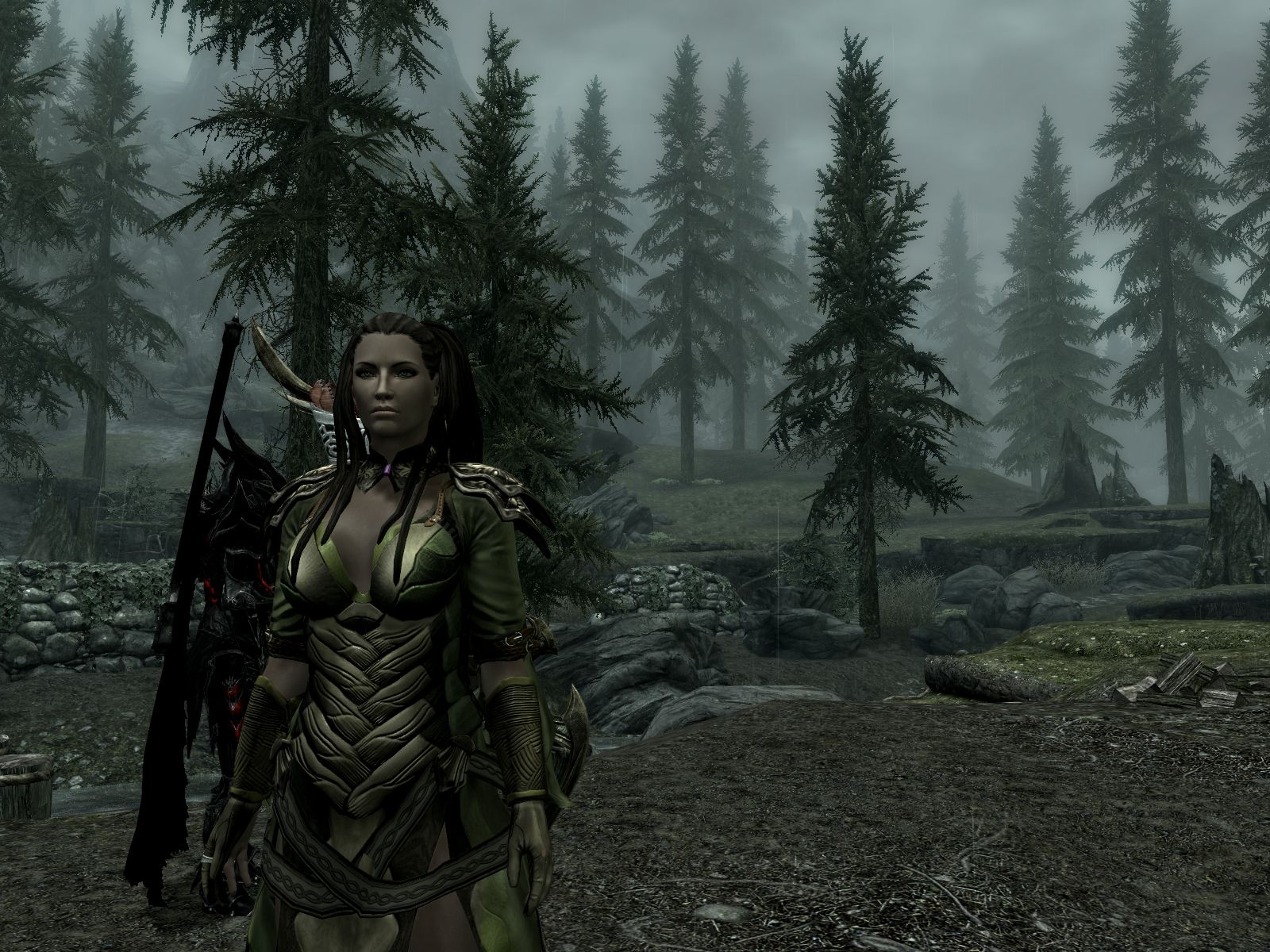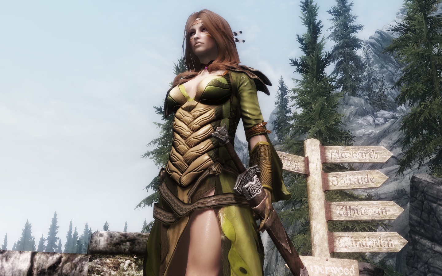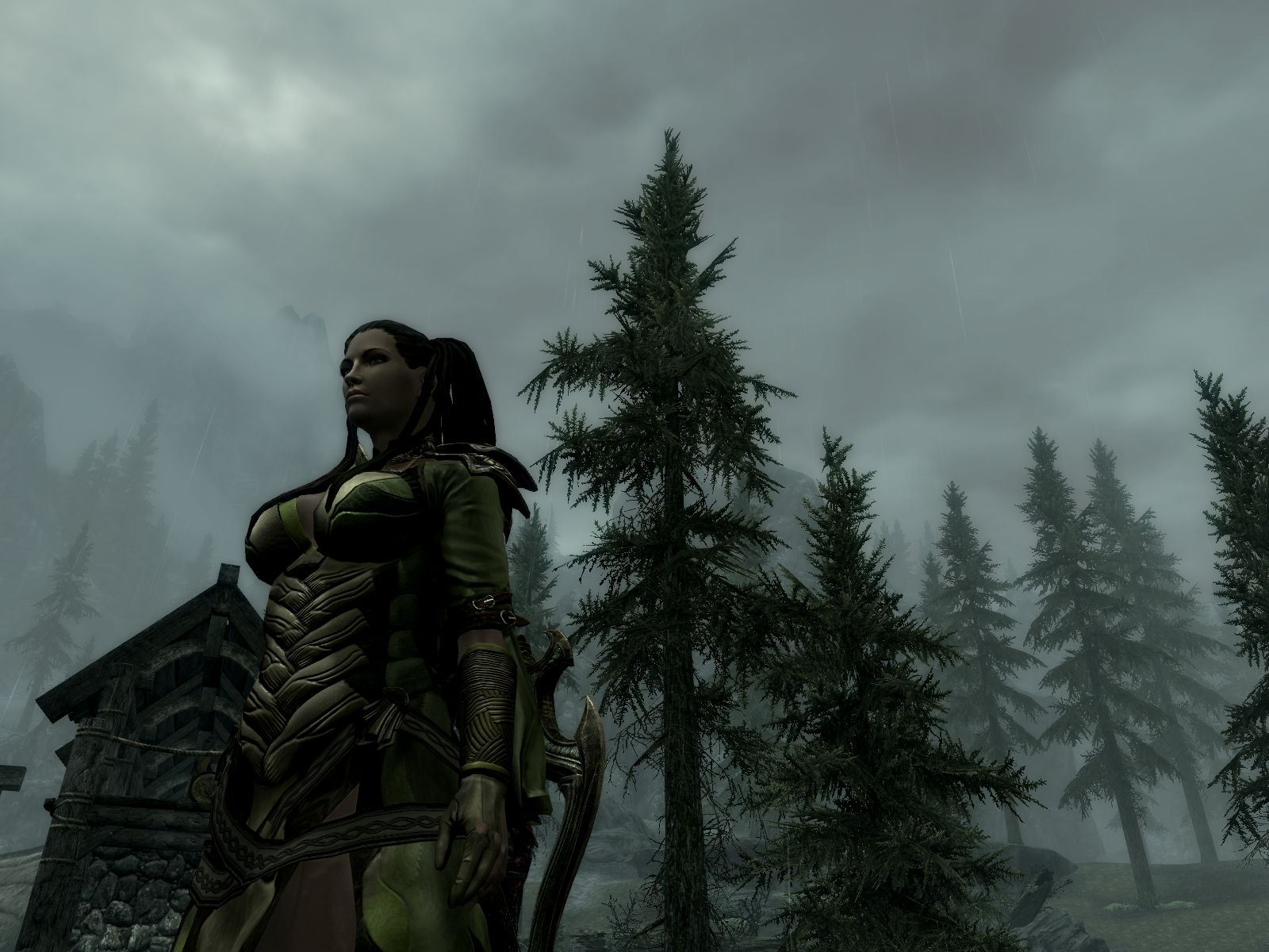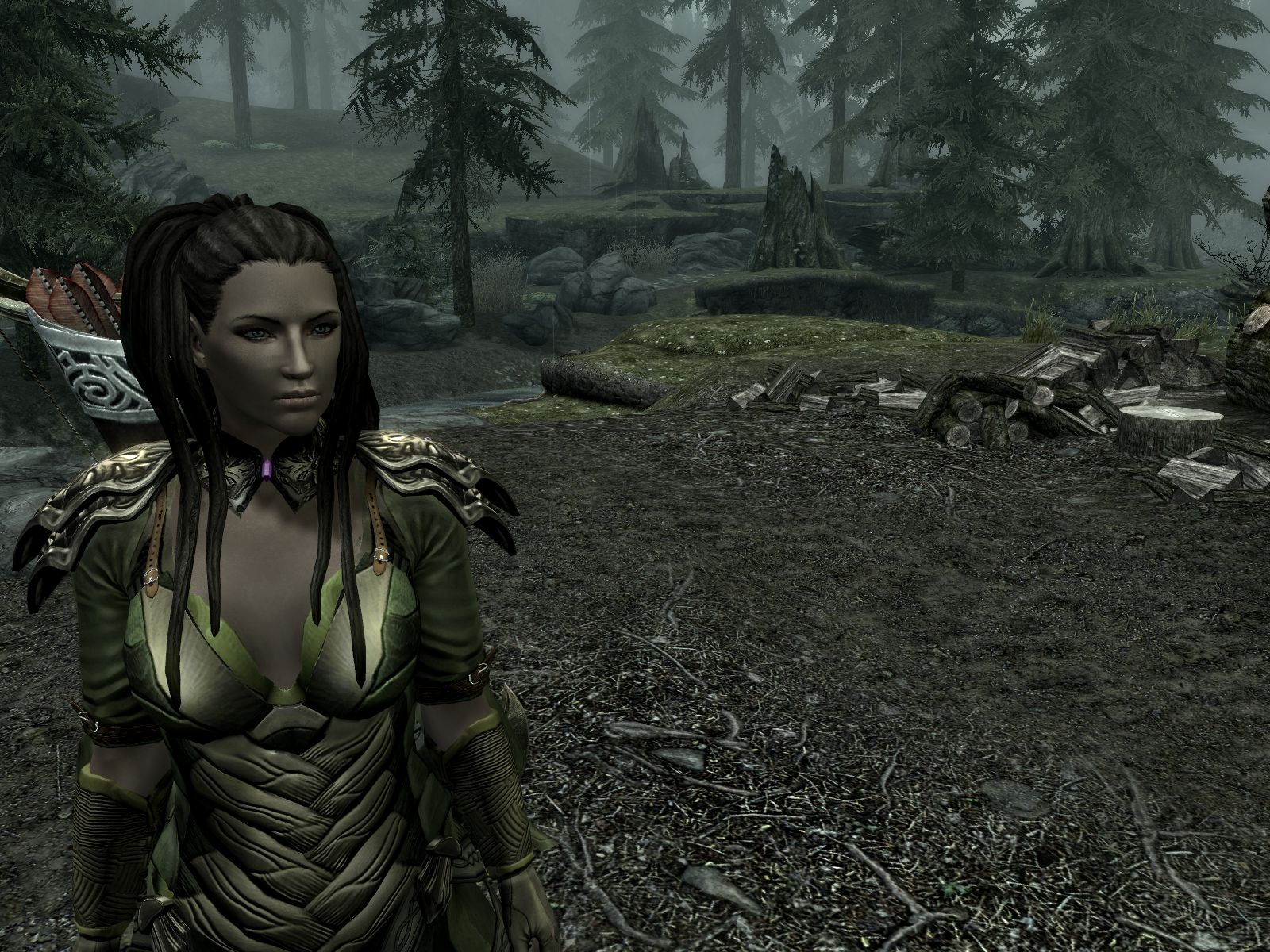 Эти изящные эльфийские доспехи традиционного зеленого цвета называются королевскими, так как изготавливались исключительно для очень знатных девушек из-за редкости материала. Прочные и легкие предметы брони делались из коры очень редкого дерева, растущего только в лесах Скайрима.