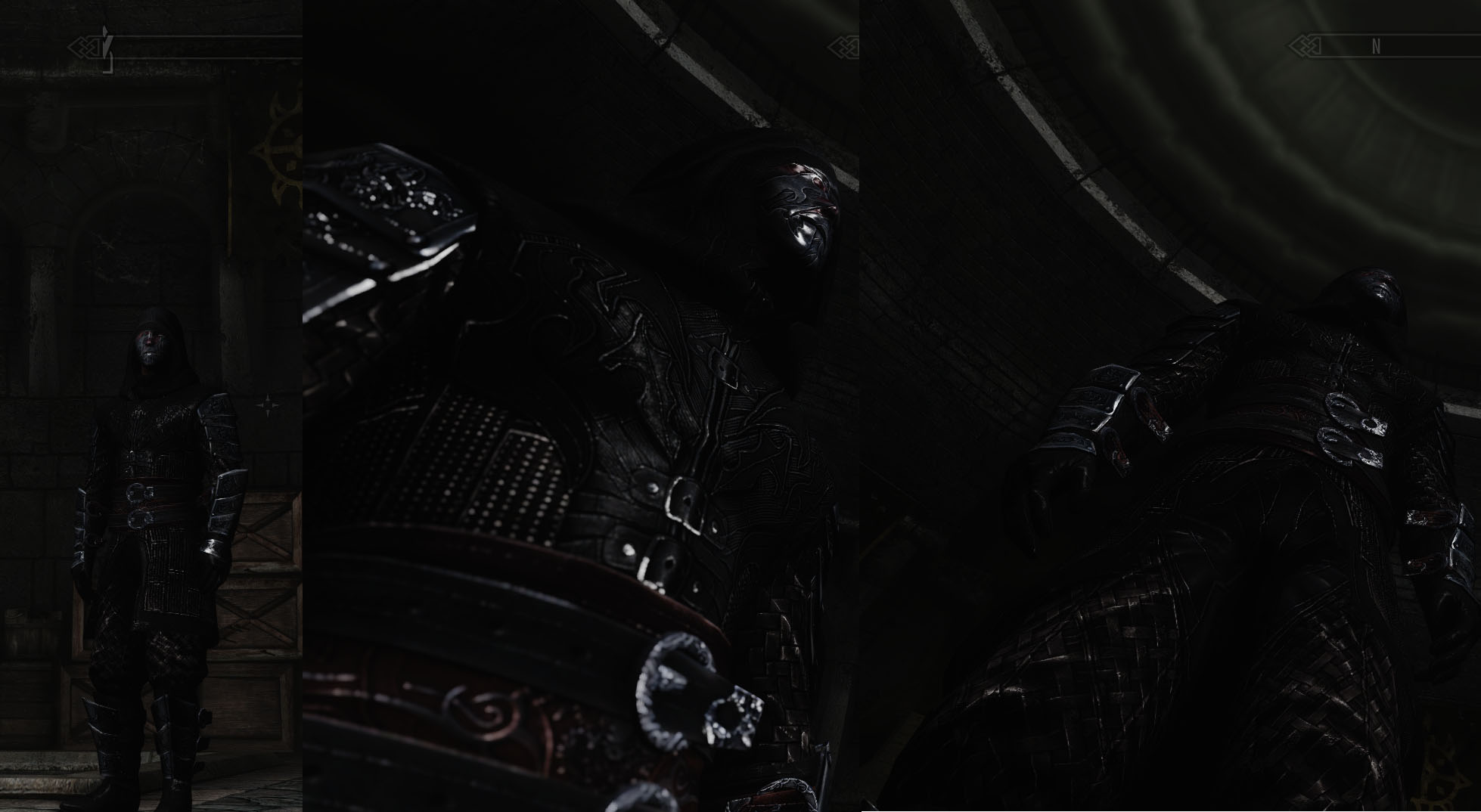Это полный комплект брони с двумя типами капюшонов. Капюшон с маской для людей и без маски для остальных рас.