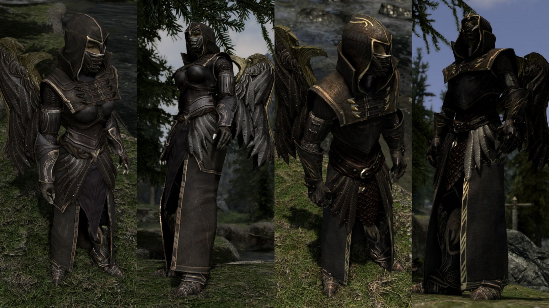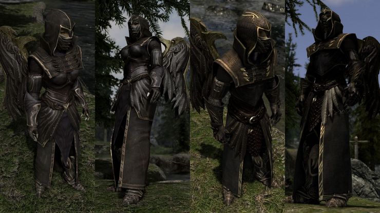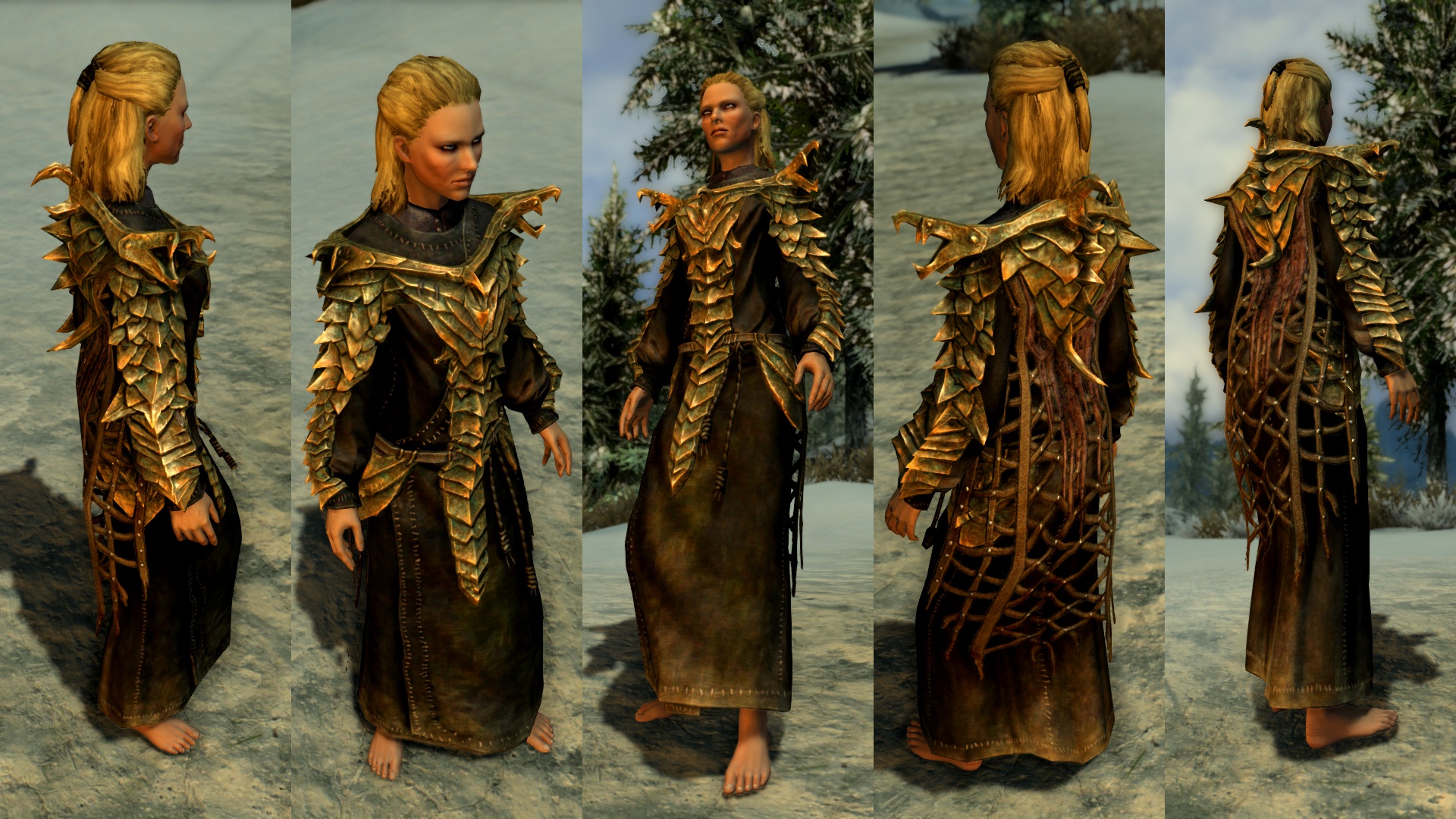 Все модели являются переработанными оригинальными, а потому будут затронуты любым установленным у вас ретекстуром эльфийской брони и талморского одеяния.