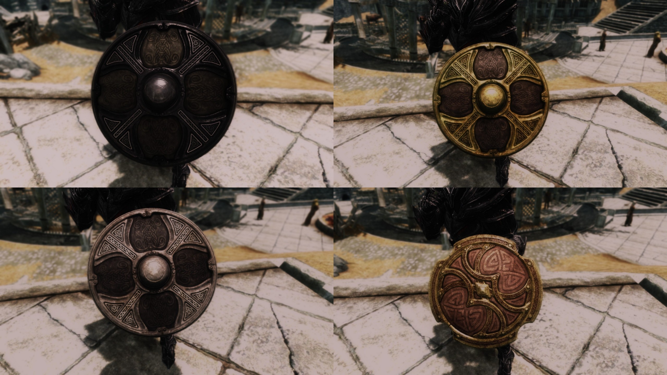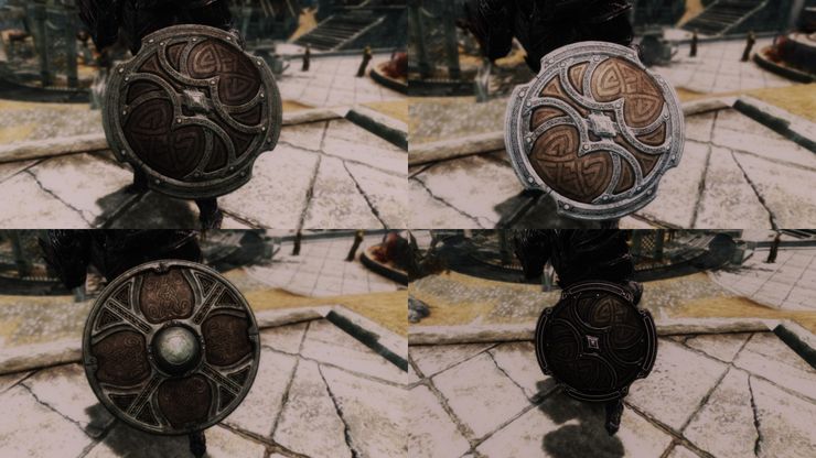 Плагин добавляет в игру новые красивые щиты, которые игрок сможет создать в Небесной кузнице или в редких случаях купить у Йорлунда. Некоторые щиты доступны в легком и тяжелом варианте.