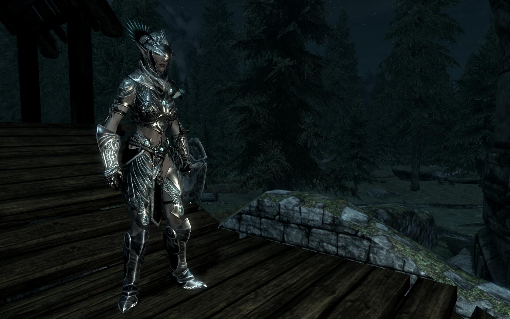 Добавляет в игру несколько комплектов эльфийской рыцарской брони, которая выглядит более величественно и благородно, чем обычная. На ум сразу приходят мысли об эльфийской версии Ланселота или клане фалмеров, который жил с нордами на равных. Не очень лорно, да, но зато работа хорошая и стильная.