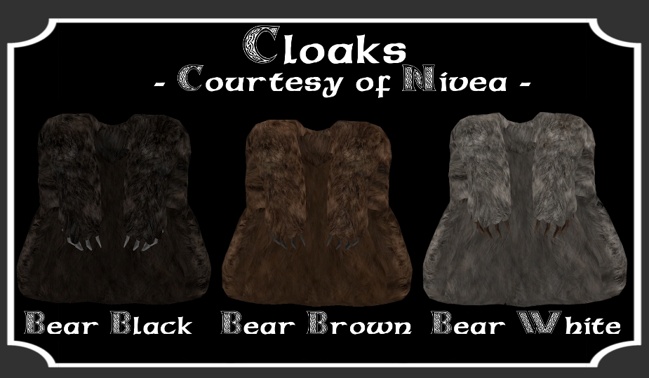 Медвежьи теплые плащи трех цветов. Комбинируются с БРОНЕЙ.