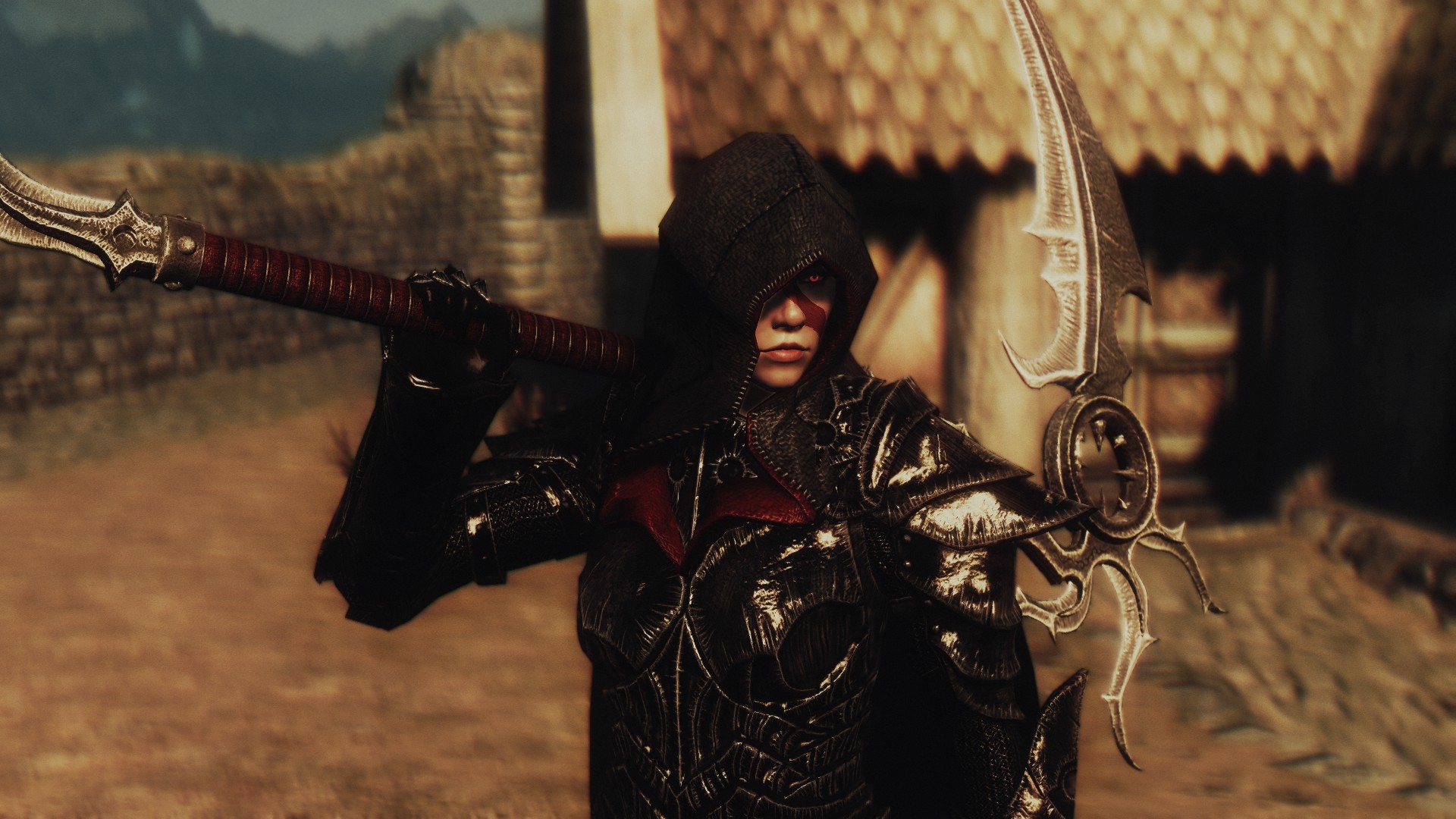 Очень хорошая броня для темных женских персонажей, радует, что это именно нормальная закрытая броня, которая внешне выглядит адекватно и без дурацких примочек, а не очередной бронелифчик. Единственное, не нравится мне этот матовый блеск на броне, он какой то странный, вроде броня косит под даэдрик, но этот блеск совсем не в тему. В любом случае, автору плюс.