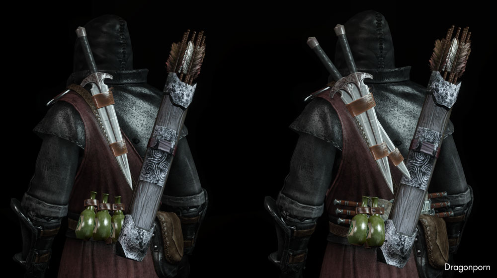 Мод заменяет древний доспех теней на новый, а также добавляет лёгкую и тяжёлую экипировку ассасина, которую можно создать в разделе разного. Капюшон теней с маской (тот, который лёгкая броня) заменяется на стилизованную маску драконьего жреца.