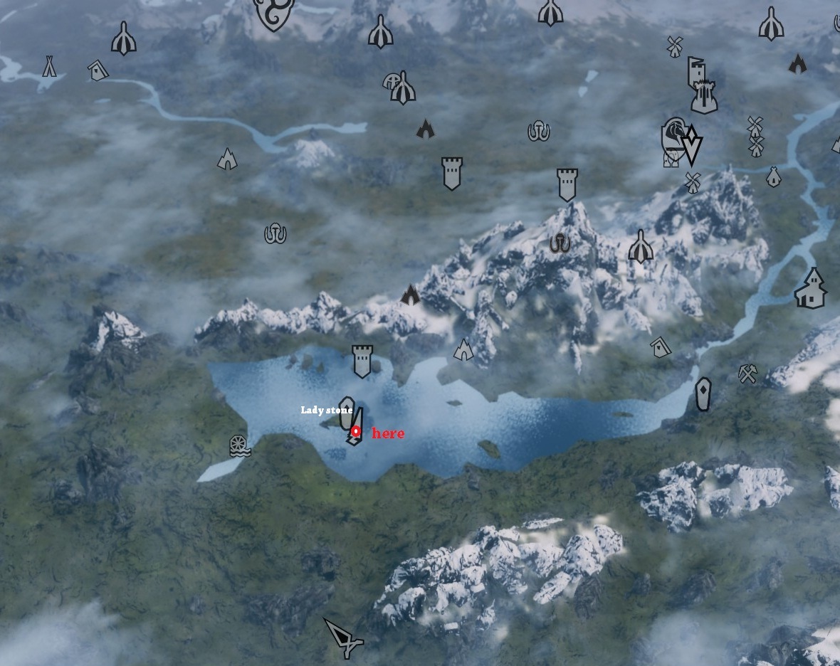 В закрытом и охраняемом сундуке (ключ у одного из стражей), расположенном к юго-западу от Вайтрана около Камня Леди (островок посреди озера, смотри скриншот).