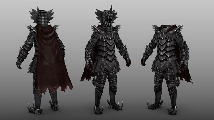 Сапоги, кираса, перчатки и шлем создаются в разделе стального. Плащ (отделенная от брони версия) создается в разделе разного.