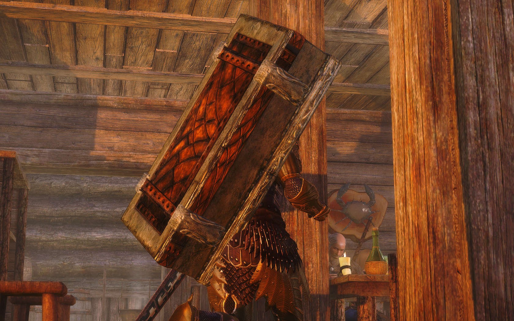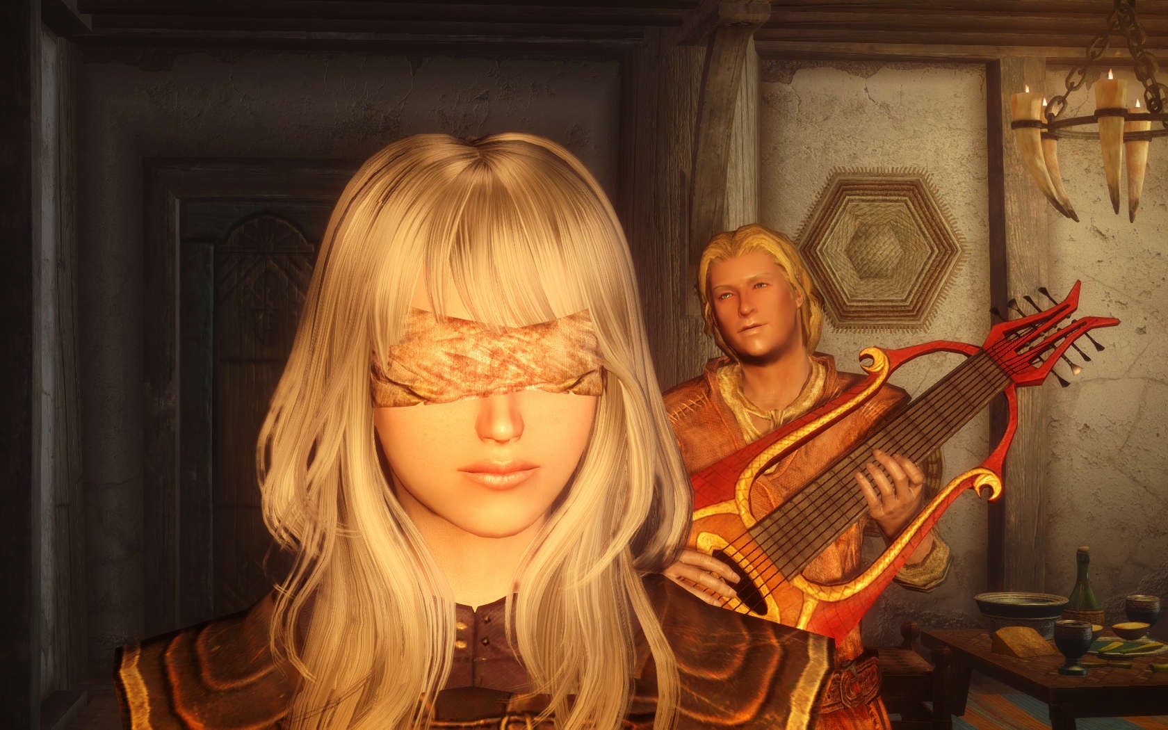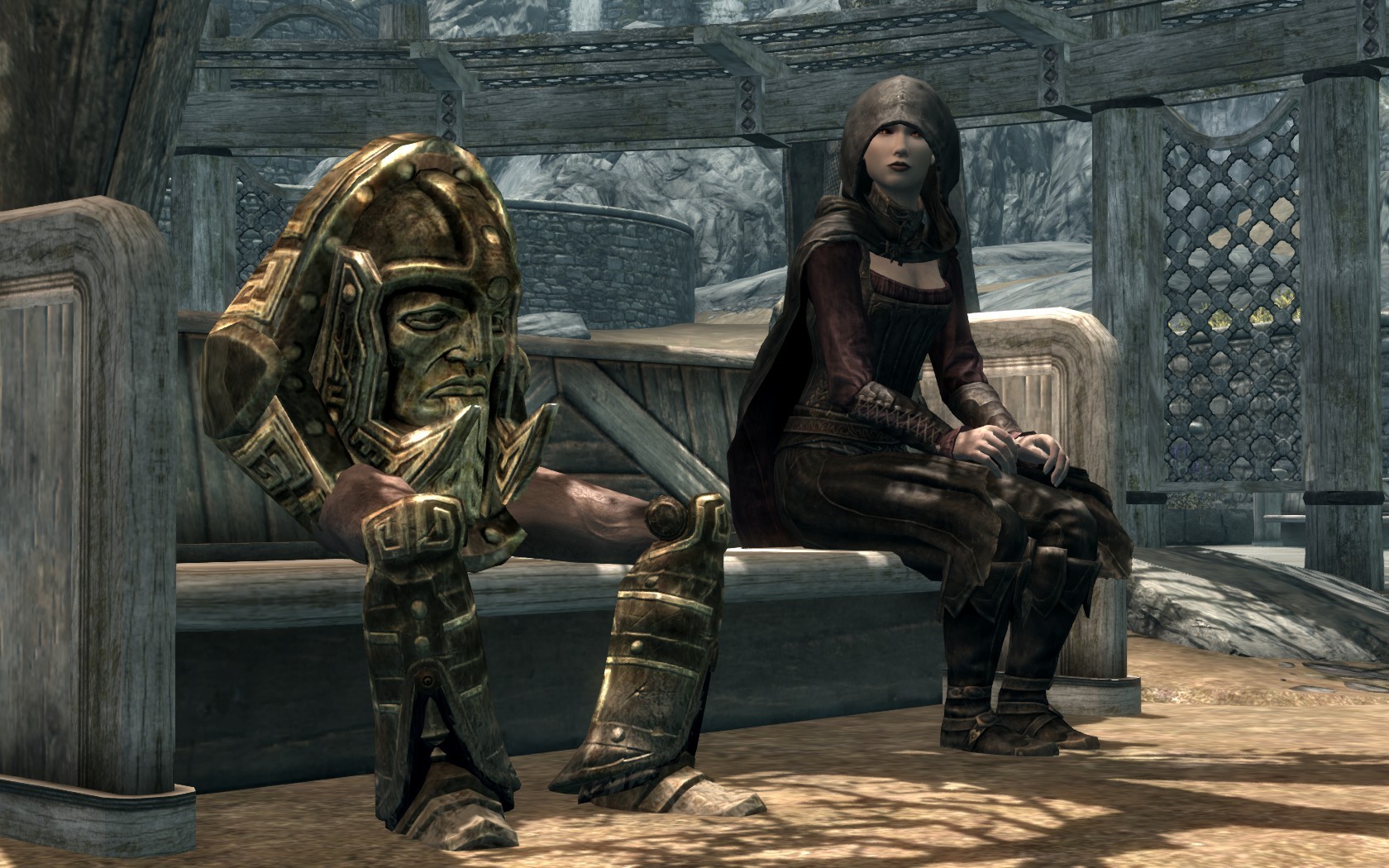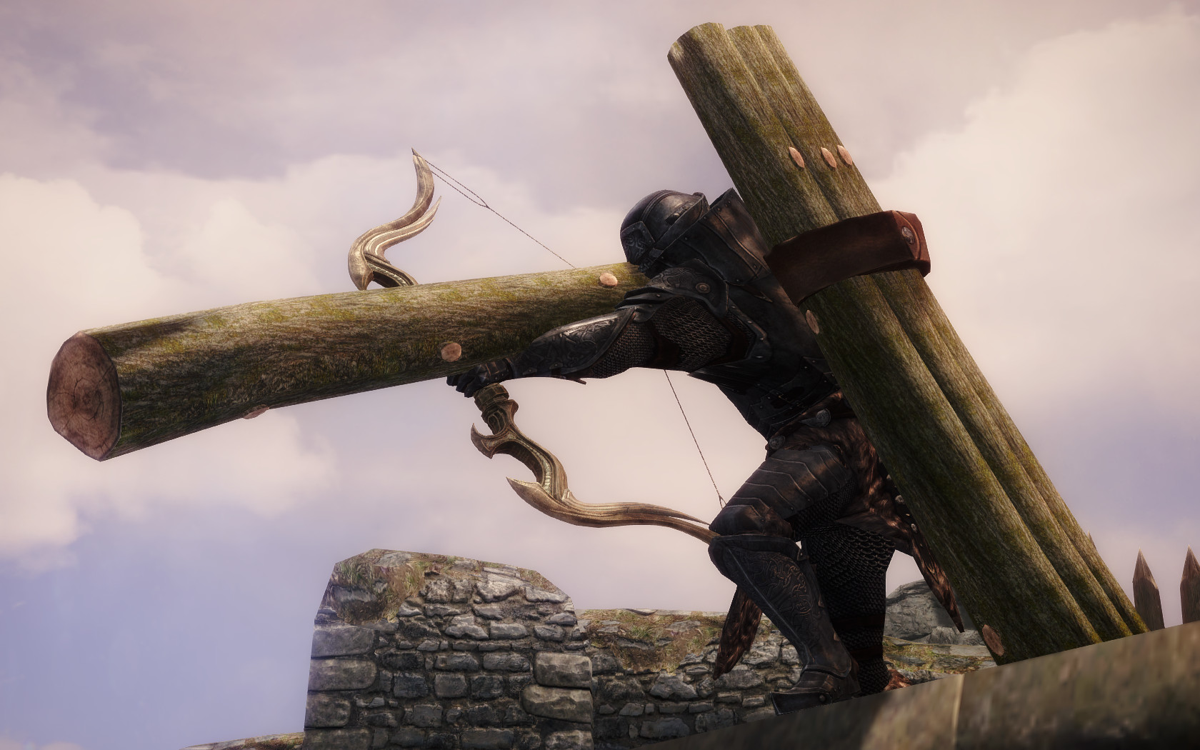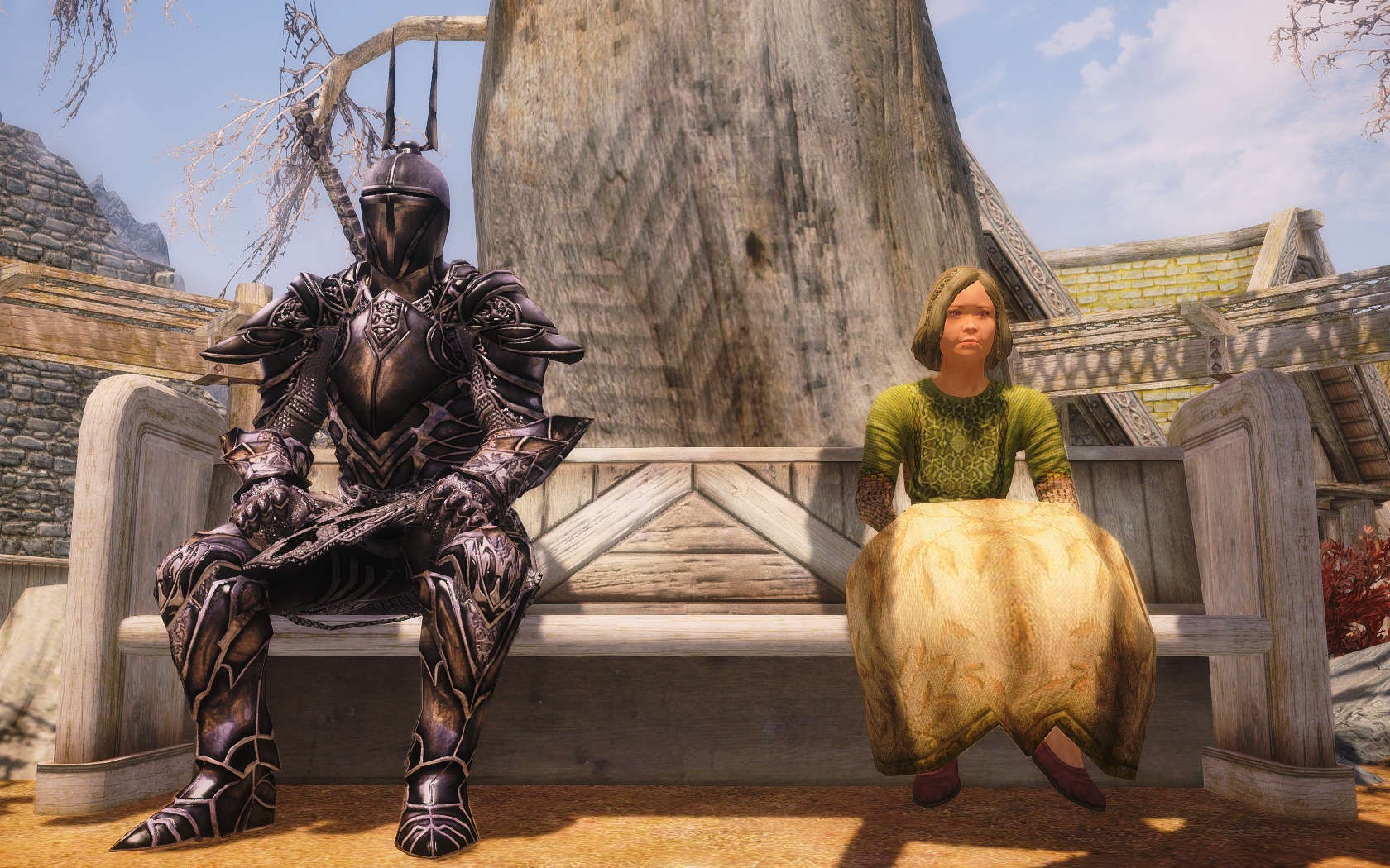 Очень много шлемаков из темных душ , молот Смоуга теперь молот мары , гробики на спинах , талморские шляпки , маска человека ворона (отсыкла на одного ютубера:) и чего стоит только костюм кротчи из Постола . Четко.Красиво.