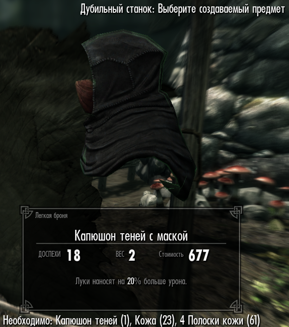 - Позволяет добавлять и убирать маски с капюшонов теней на дубильном станке.