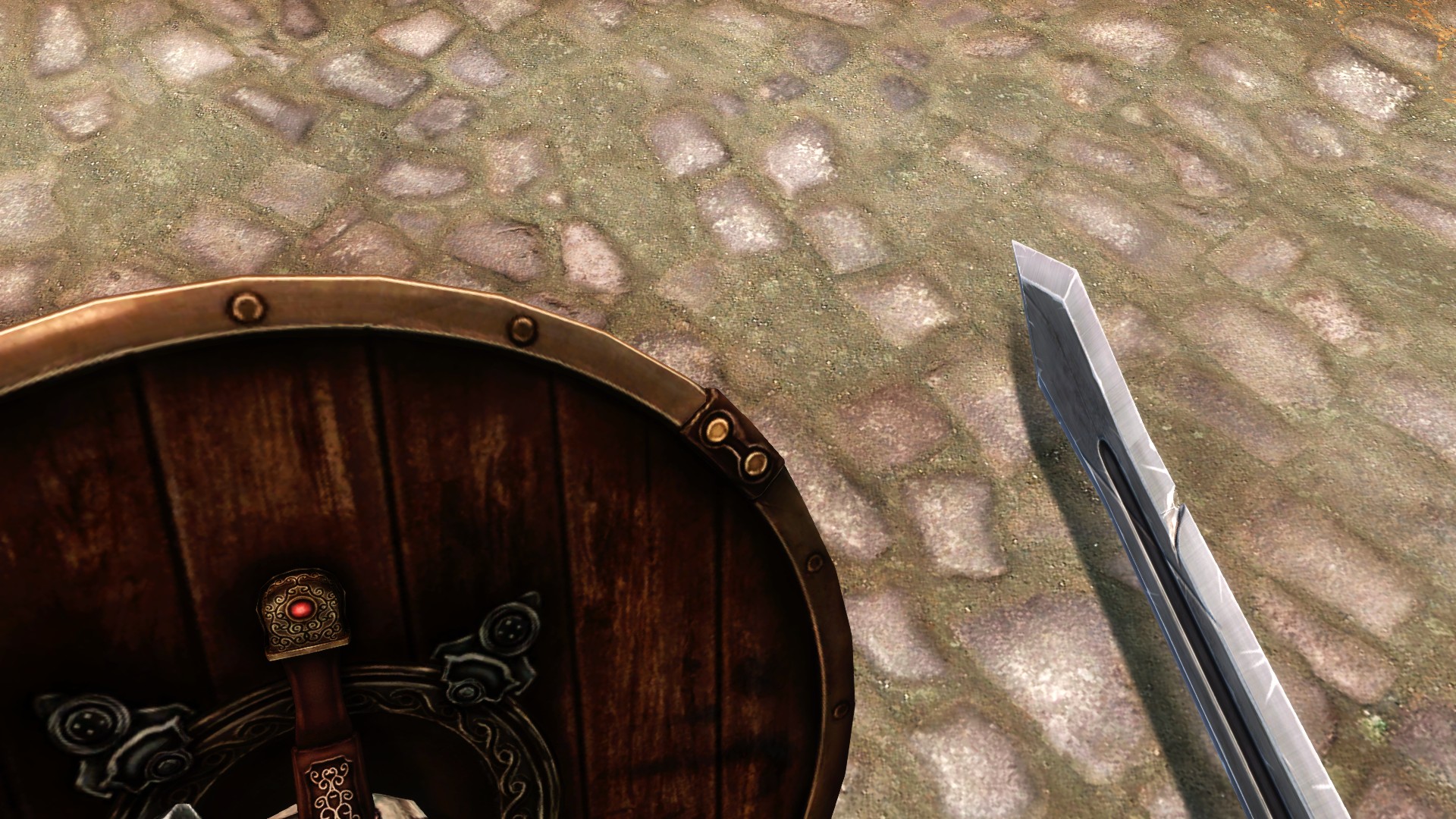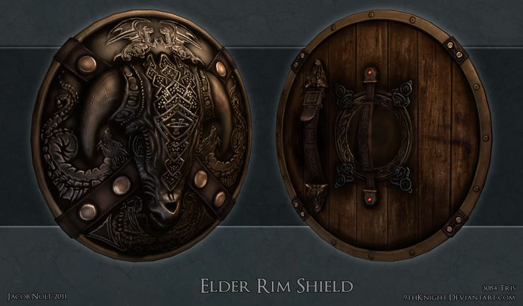 Моё мнение: щит просто офигенен. Ну не всё же ковать поношенные и побитые щиты и мечи..? Как будто мастер кузнец шедевр замутить не может.. )) Автору 100 с плюсом и Арсинису за перевод.