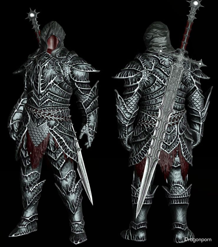 Мод добавляет в игру новый комплект брони с великолепными текстурами, который подойдет персонажу любого пола и расы. По характеристикам данная броня на 2 очка превосходит даэдрическую, выковать ее можно в разделе даэдрического. Также имеется несколько типов капюшонов.
