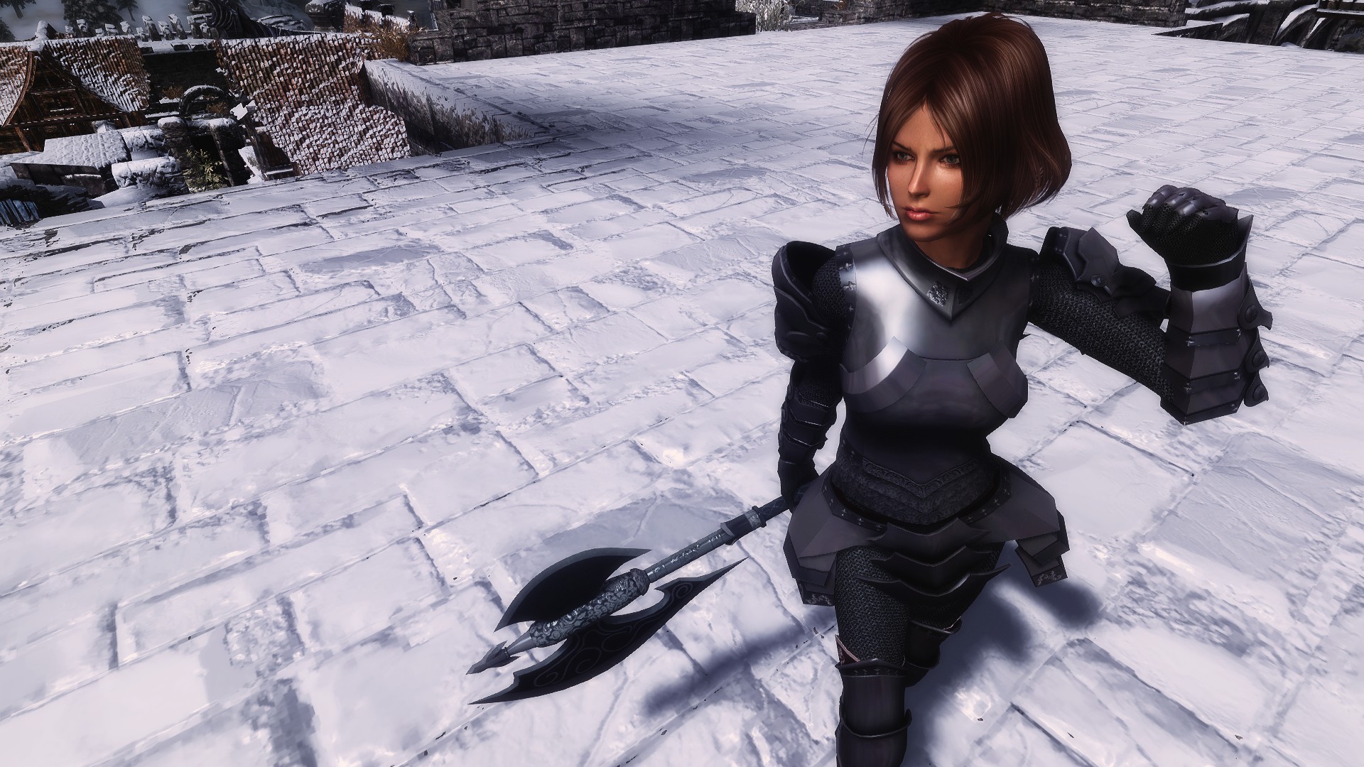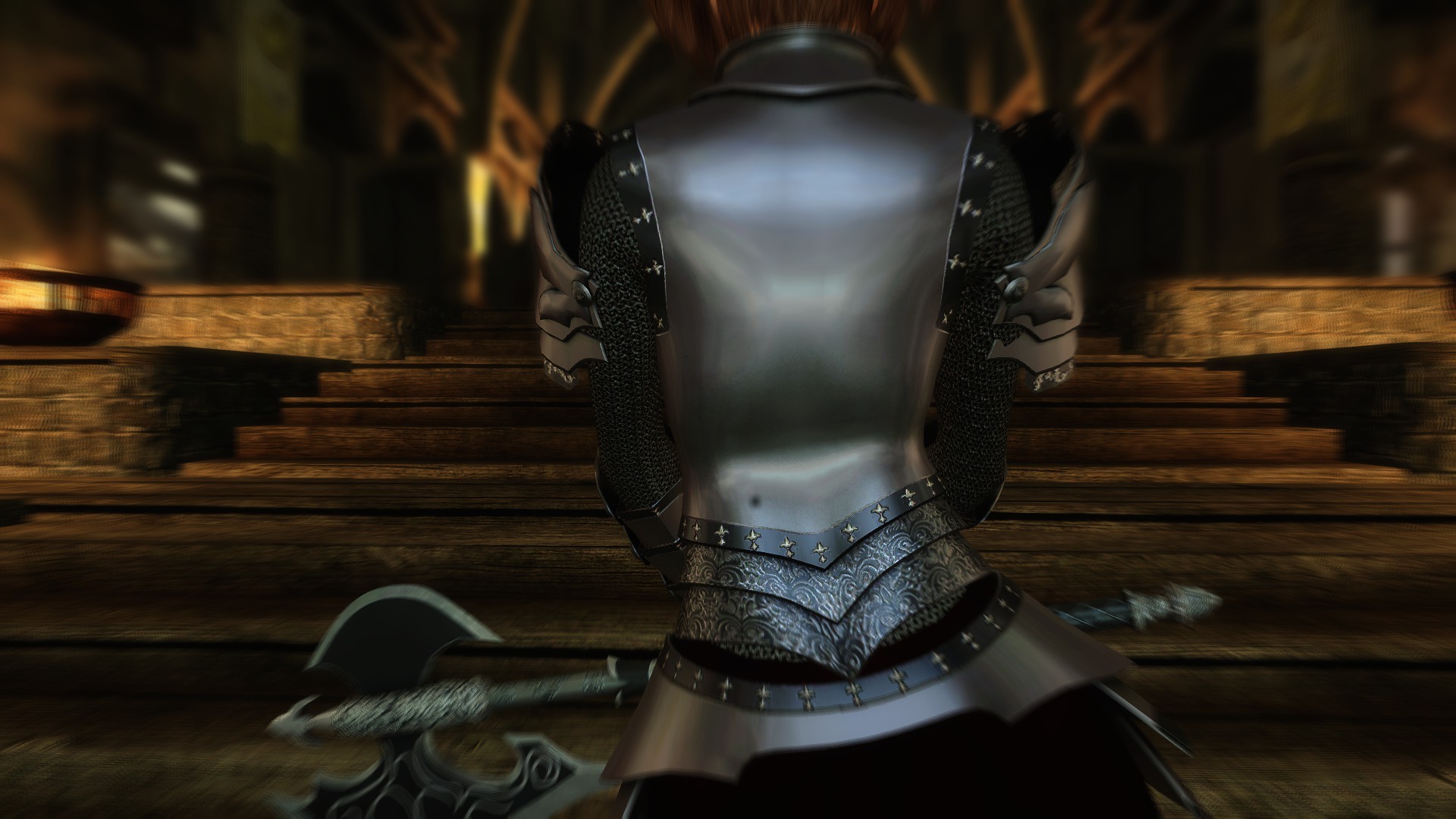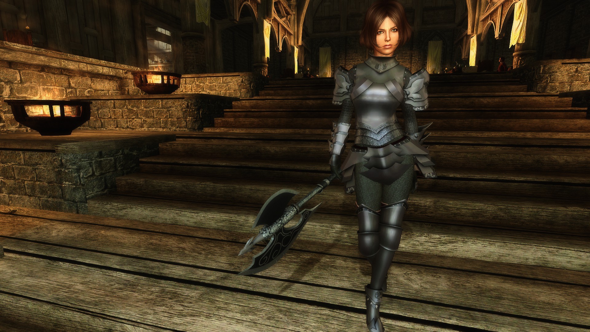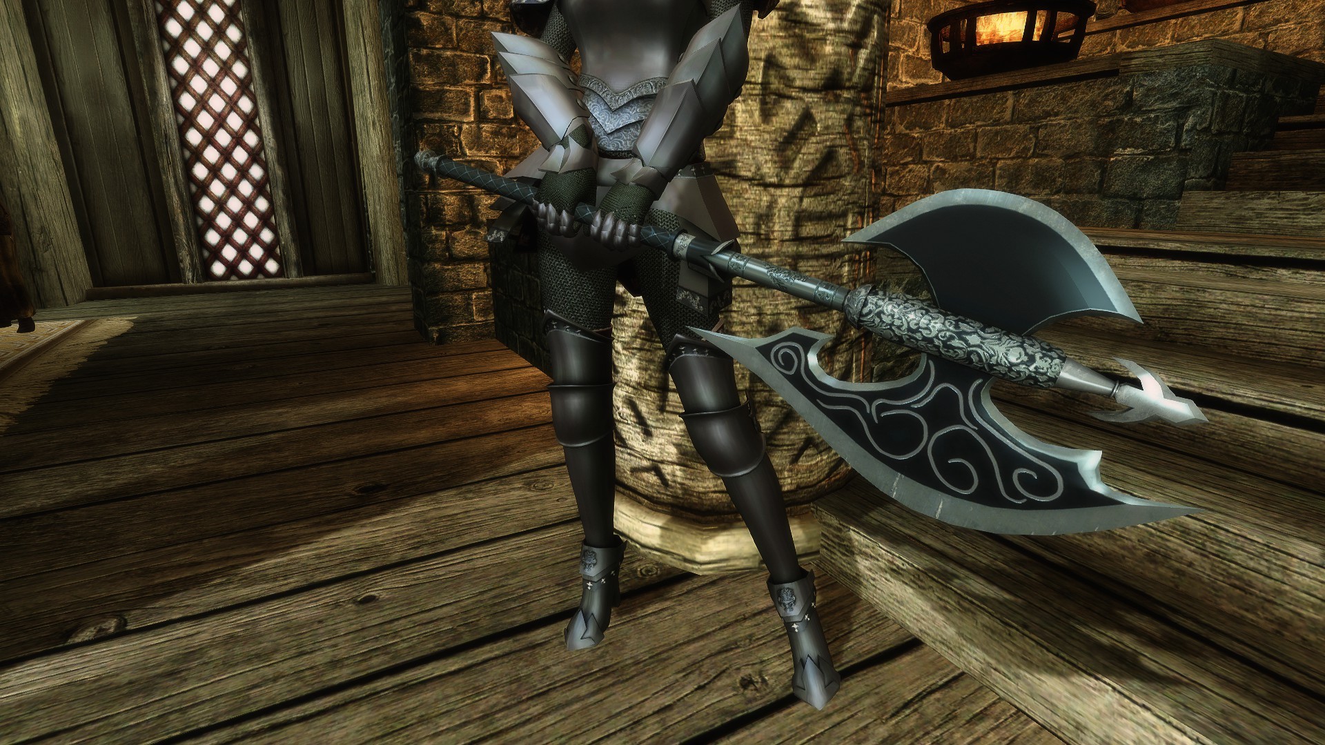 Мод добавляет в игру комплект тяжелой брони для дам и секиру. Броня использует для тела формы UNP, однако не требует данный реплейсер, поскольку броня закрывает все тело. По характеристикам броня и секира равны даэдрическим, куются они в даэдрическом разделе. Учтите, шлем невидимый, автор не хотел скрывать лицо своего персонажа, но ему был нужен бонус от полного комплекта, потому и есть в комплекте невидимый шлем.