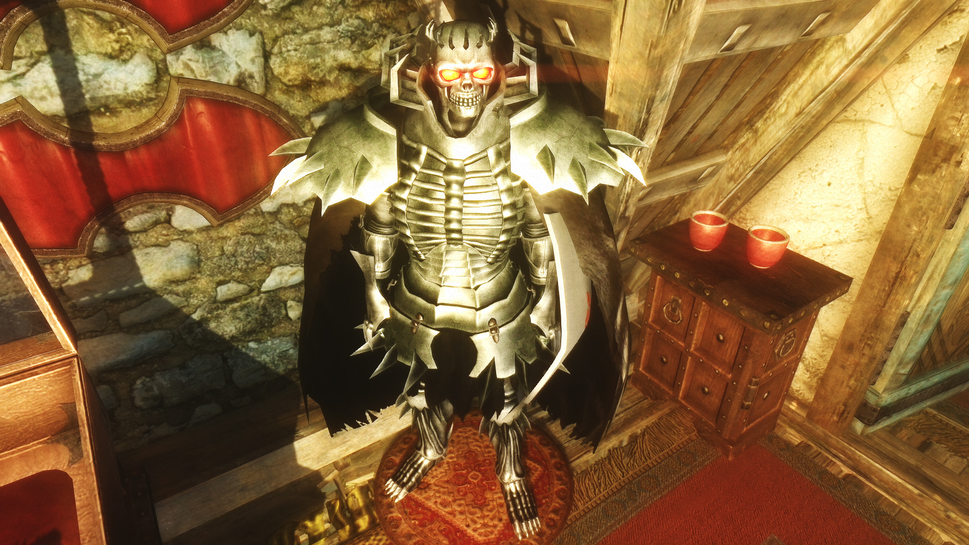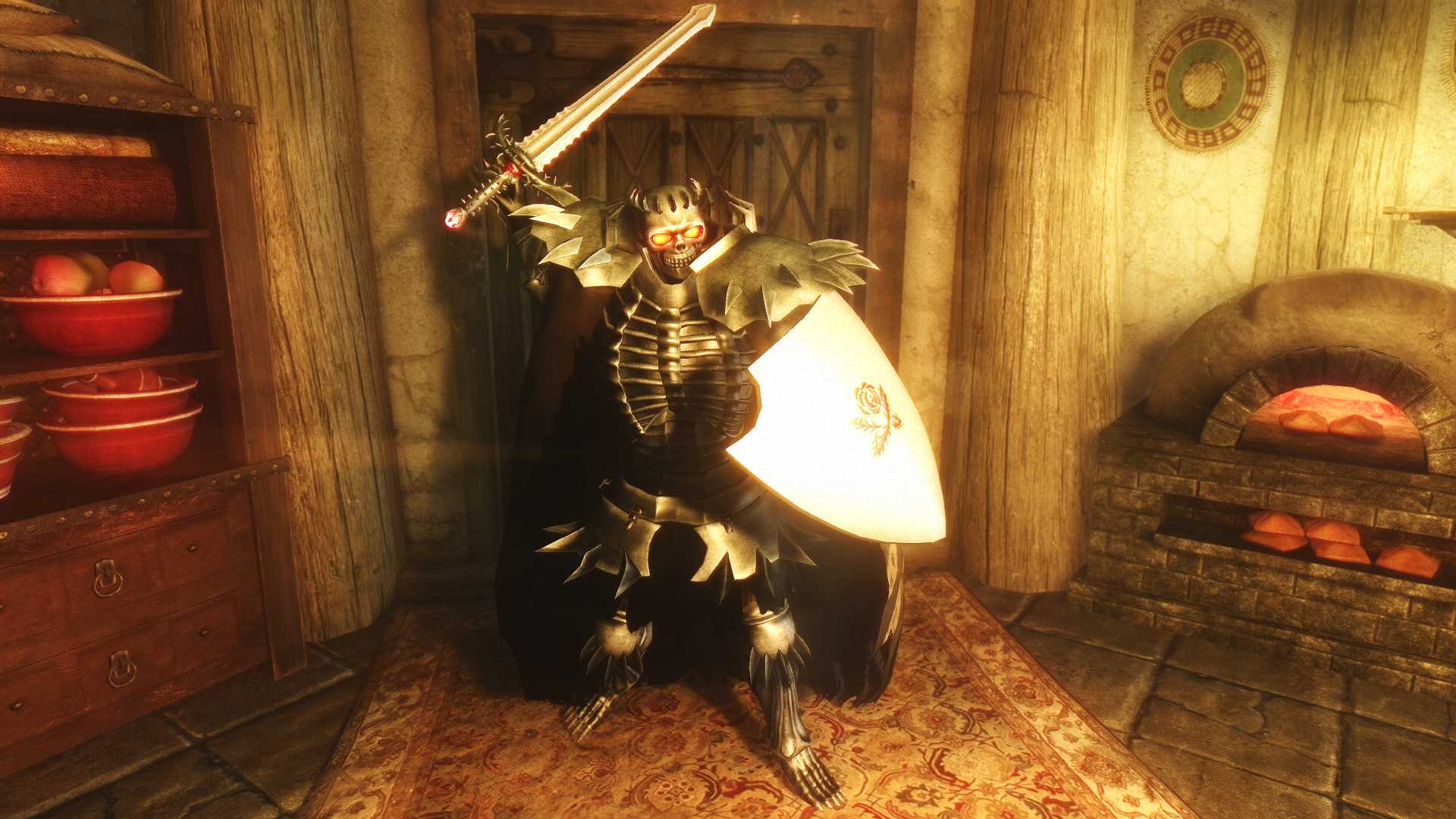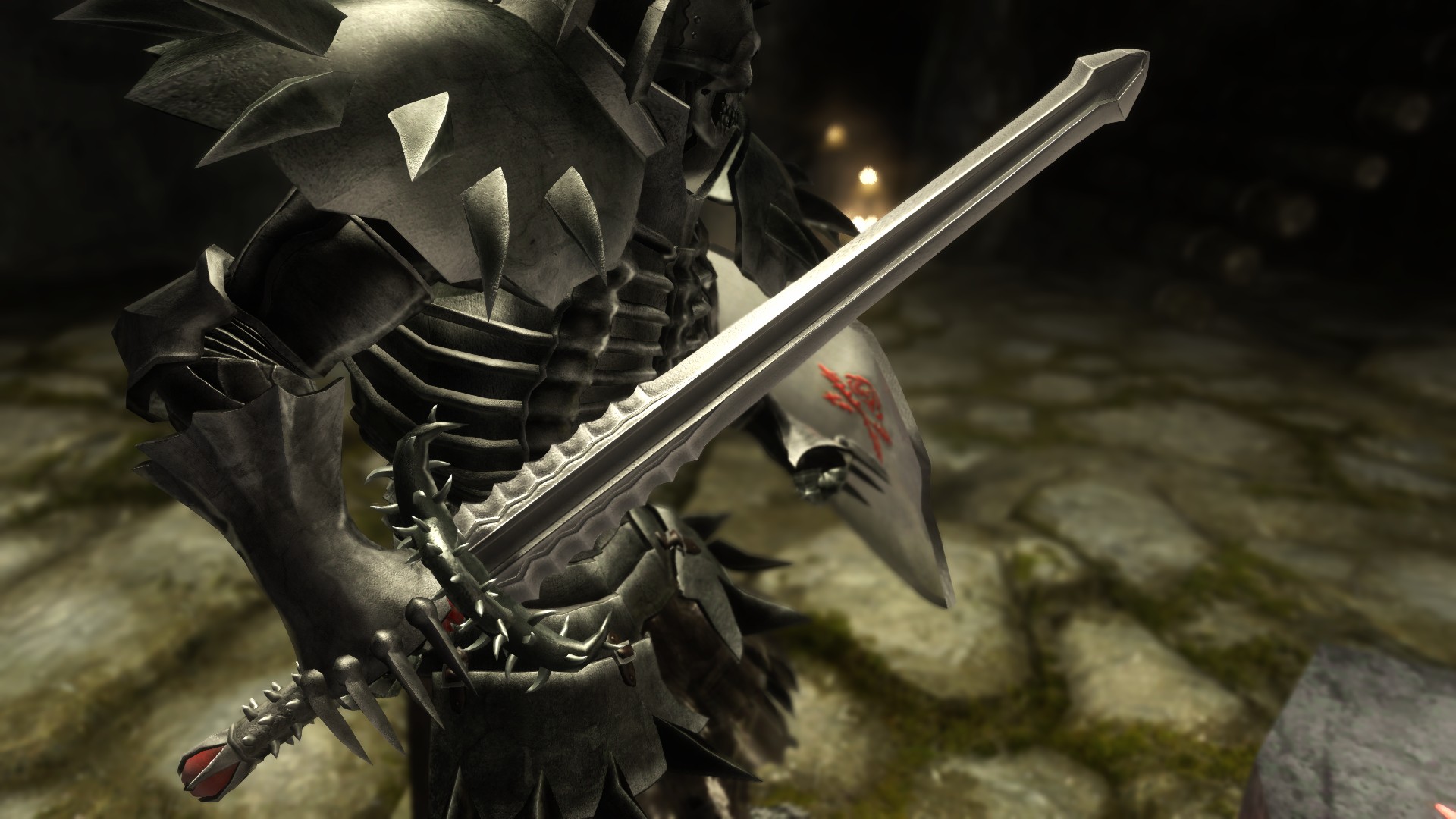 Мод добавляет в игру броню, меч и щит Рыцаря-черепа. Найти их можно в руинах Высоких врат в Тронной комнате, ищите гроб рыцаря-черепа. Имеется легкий и тяжелый варианты брони.