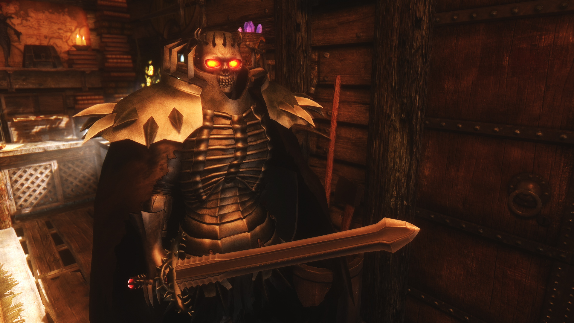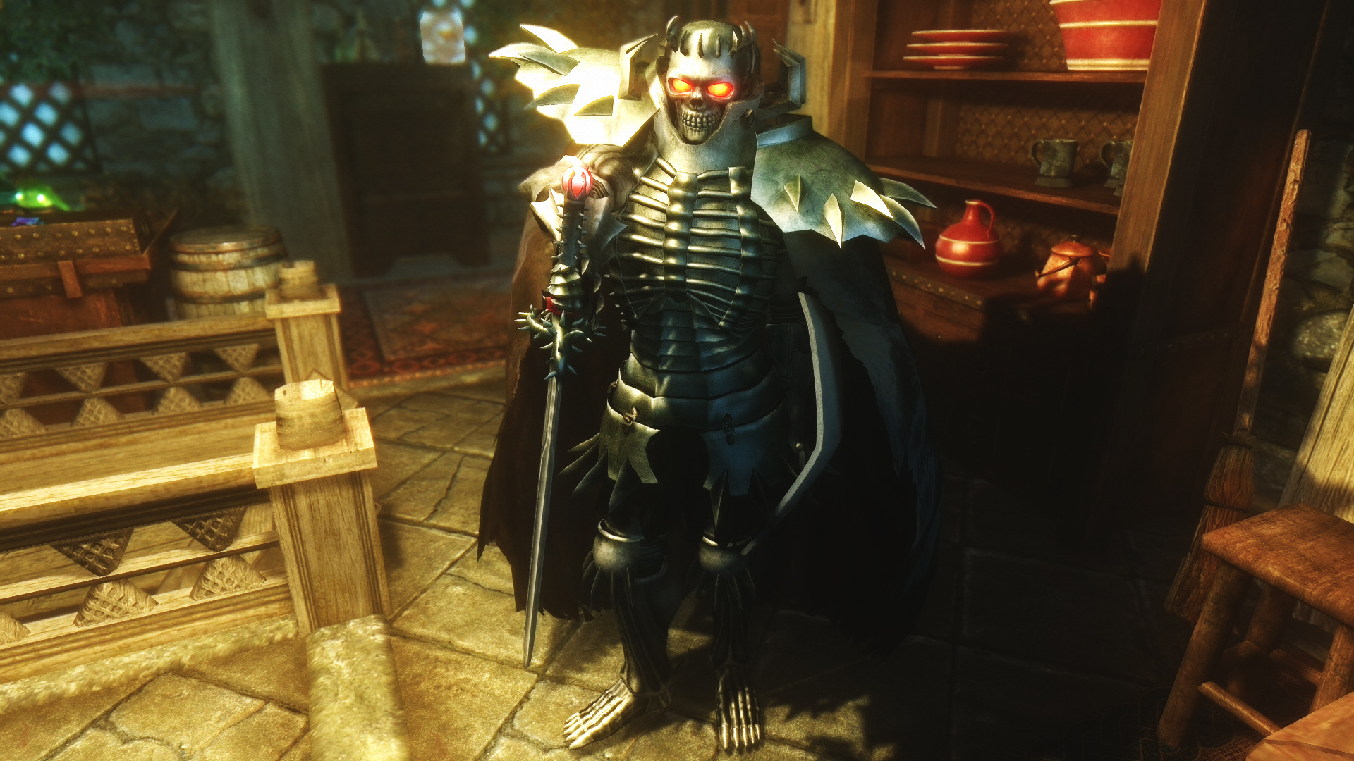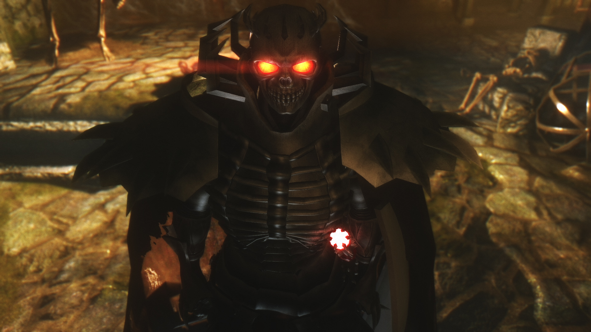 Мод добавляет в игру броню, меч и щит Рыцаря-черепа. Найти их можно в руинах Высоких врат в Тронной комнате, ищите гроб рыцаря-черепа. Имеется легкий и тяжелый варианты брони.