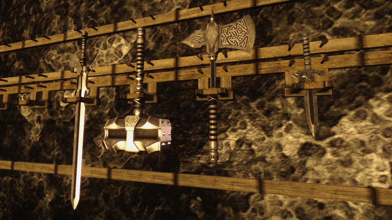 Для убийства врагов к вашим услугам кинжал, топор, боевой молот и меч.